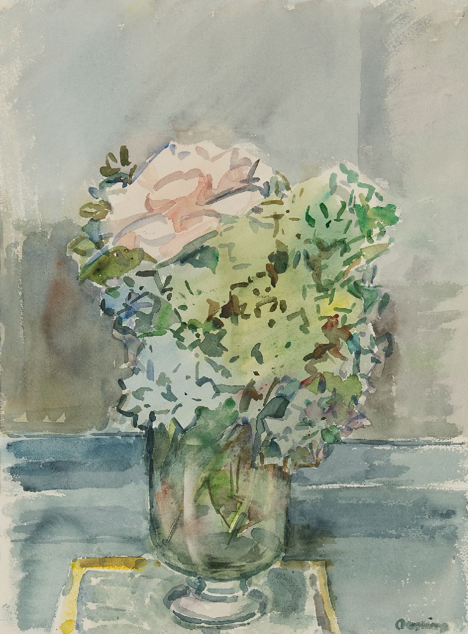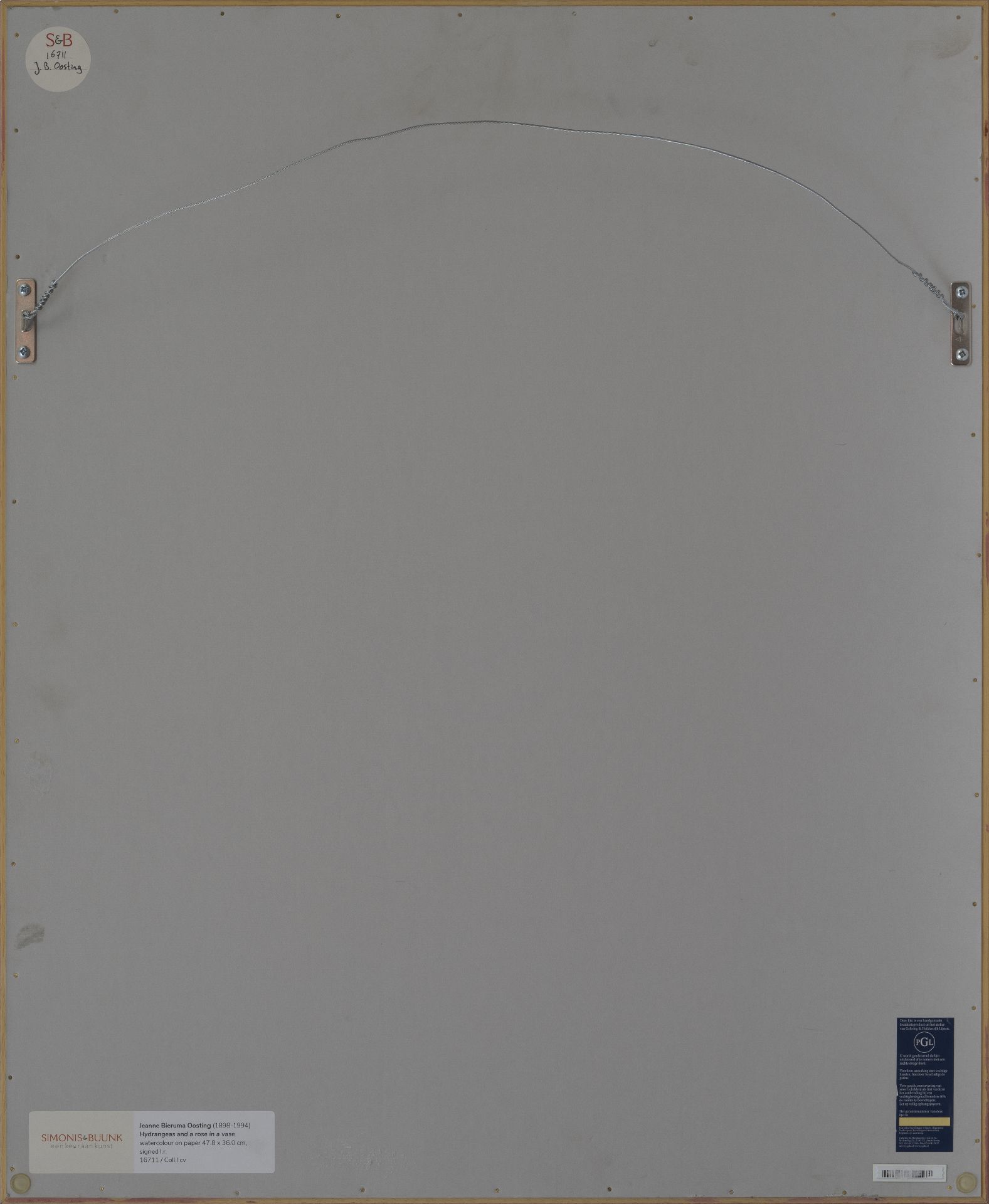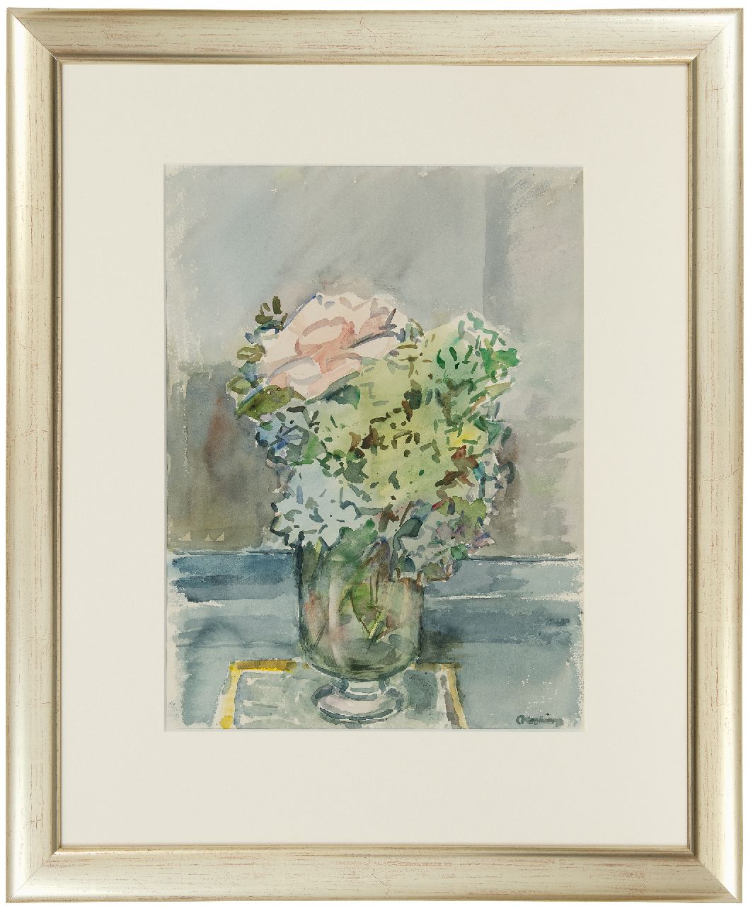 Jeanne Bieruma Oosting Kunstwerk • Aquarell • Zeichnung • zuvor zu verkaufen Hortensien und Kletterrose in einer Vase
