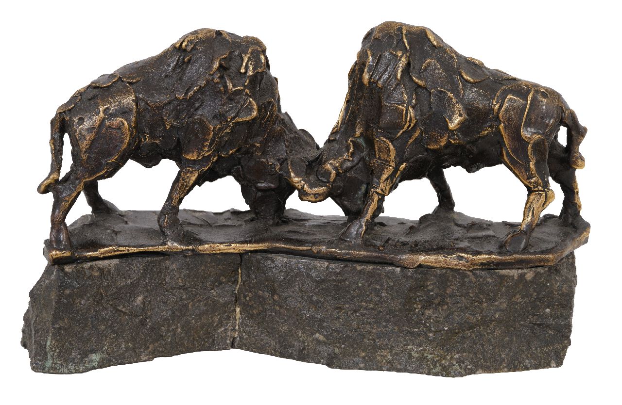 Jits Bakker Kunstwerk • Bild • Skulptur • zu verkaufen Zwei Bisons