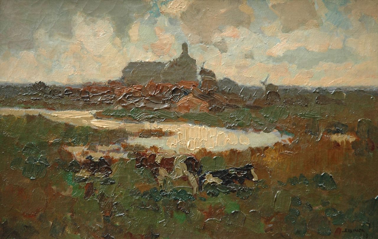 Joh Elsinga Kunstwerk • Gemälde • zuvor zu verkaufen Cows at pasture, on a rainy day