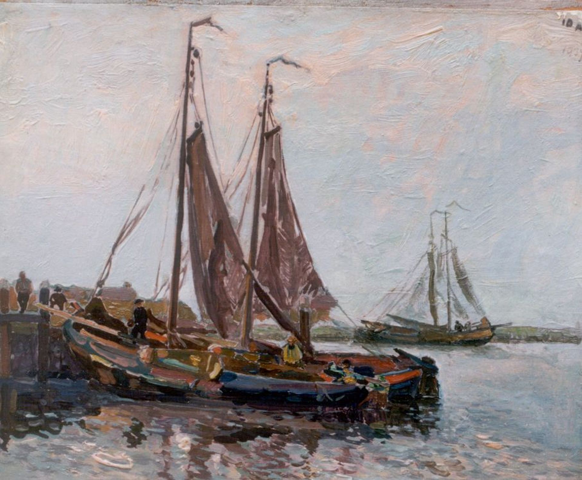Joh Elsinga Kunstwerk • Gemälde • zuvor zu verkaufen Moored sailing vessels