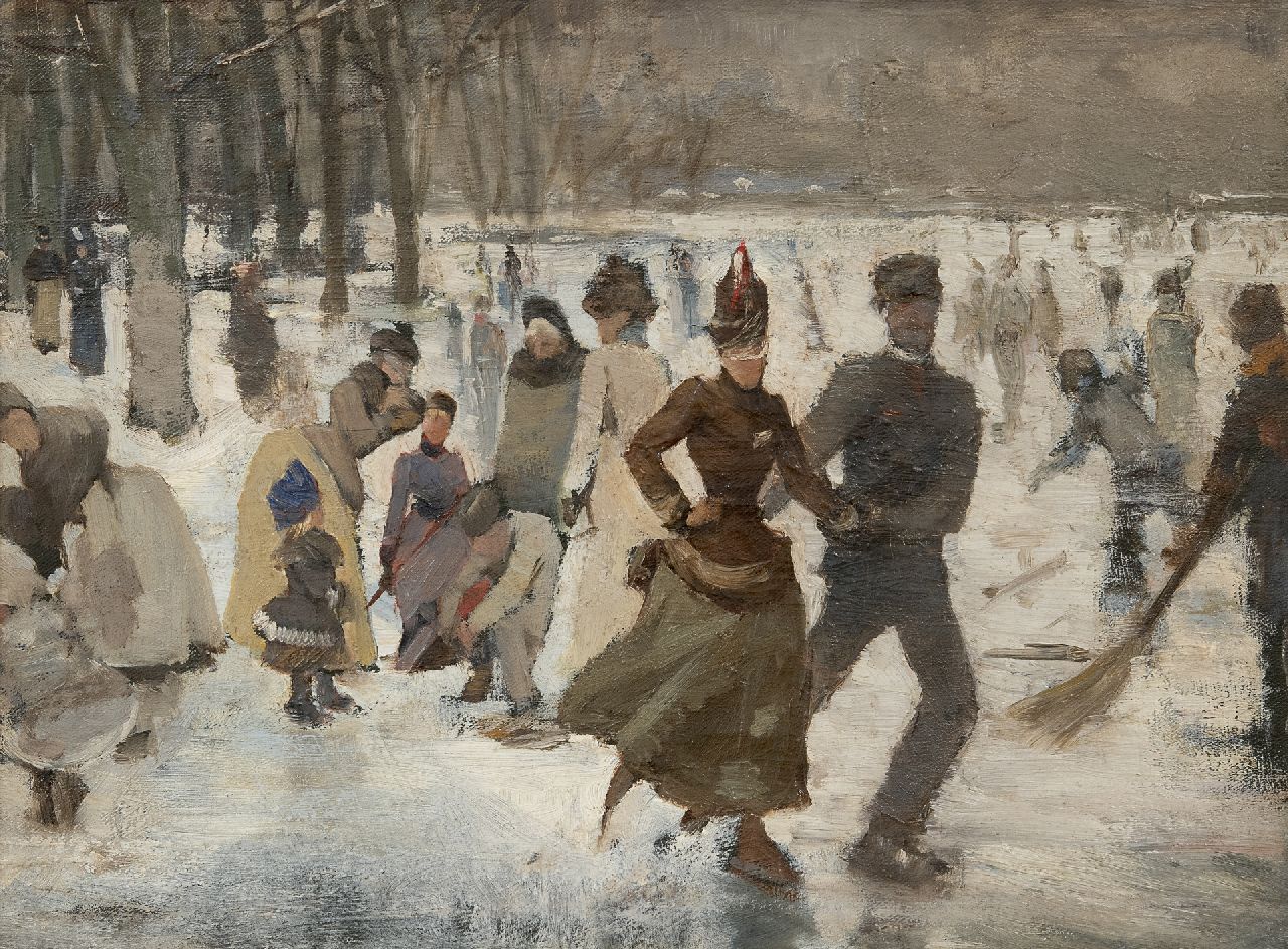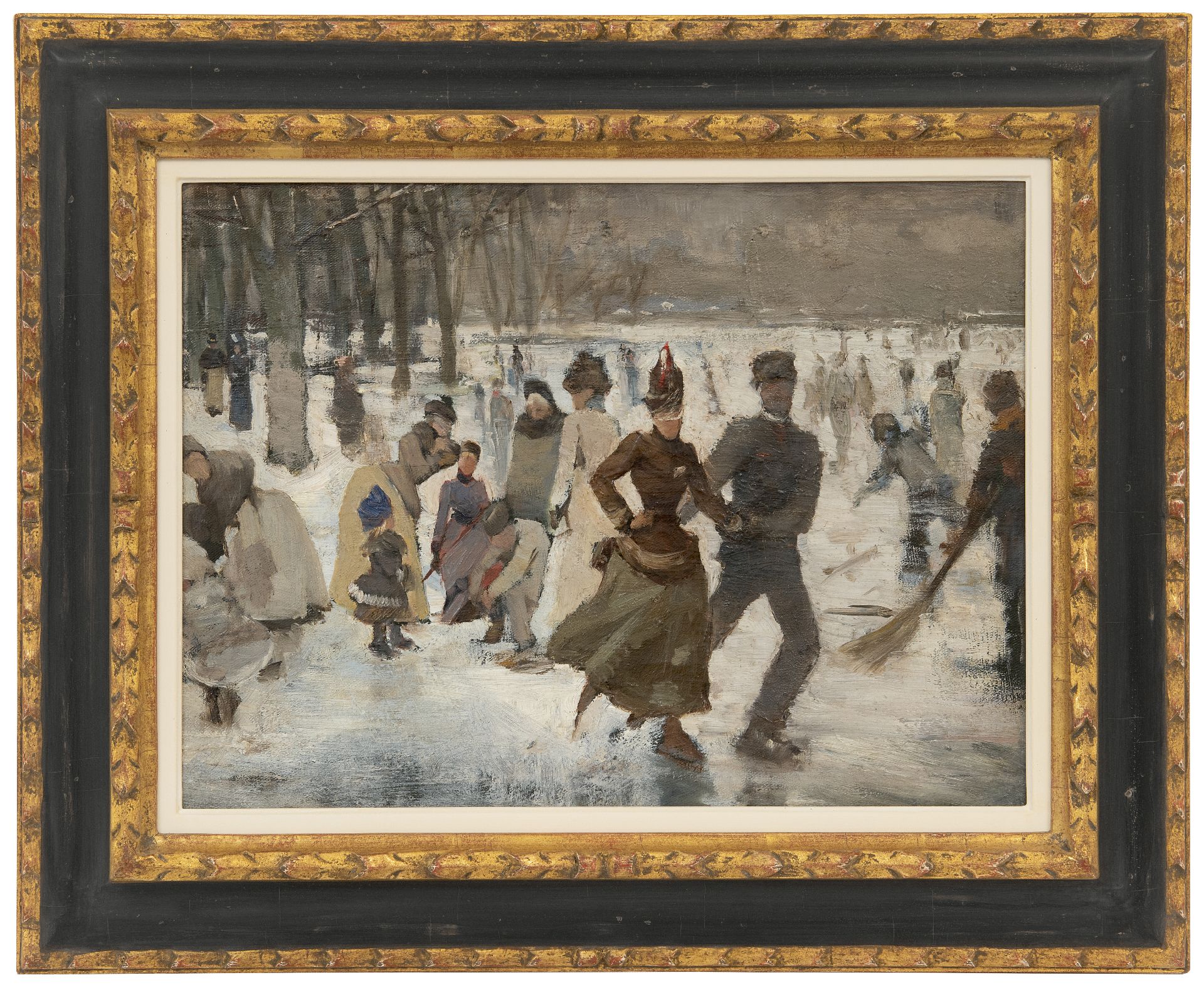Johan Antoni de Jonge Kunstwerk • Gemälde • zu verkaufen Eisvergnügen auf einem Waldteich