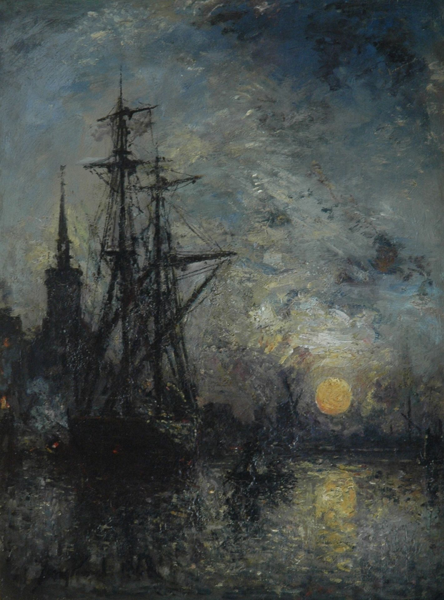 Johan Barthold Jongkind Kunstwerk • Gemälde • zuvor zu verkaufen The harbour of Rotterdam by night