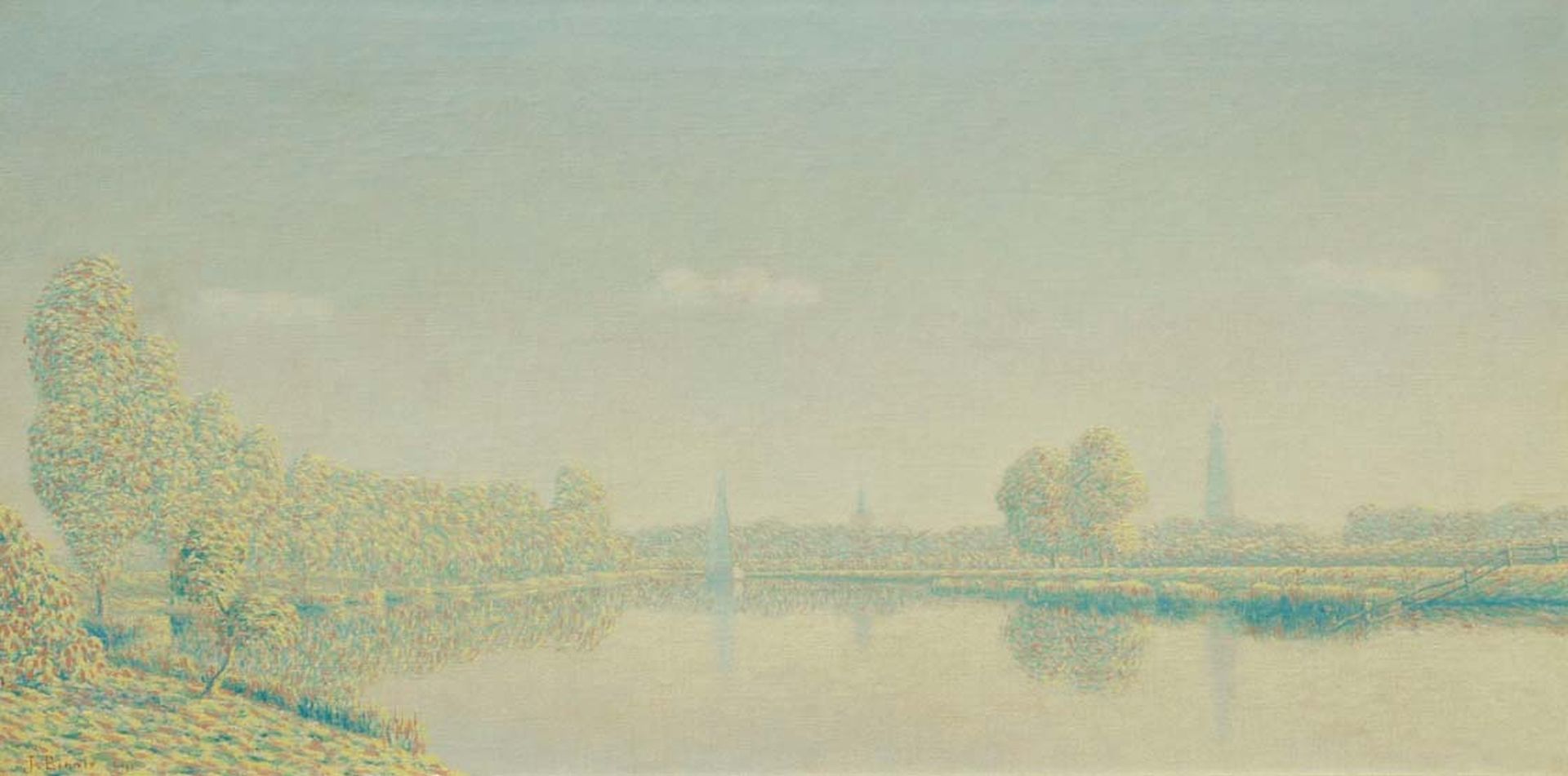 Johan Birnie Kunstwerk • Gemälde • zuvor zu verkaufen A view on the Eem with Amersfoort in the background