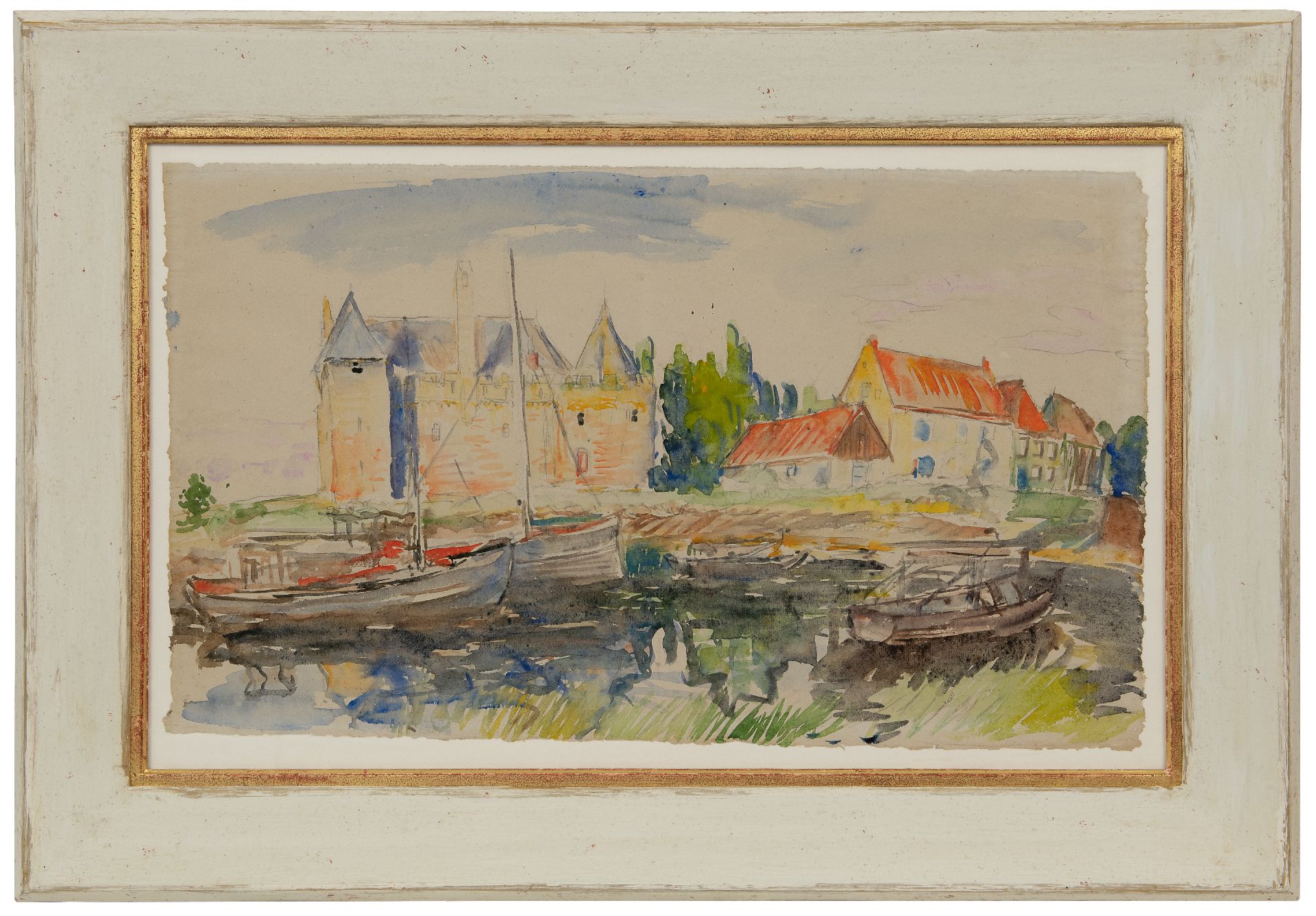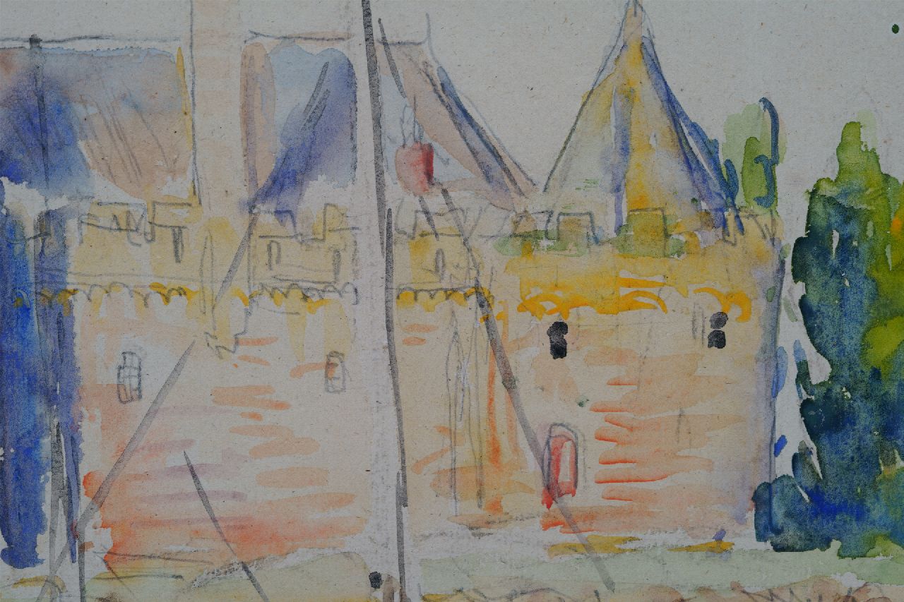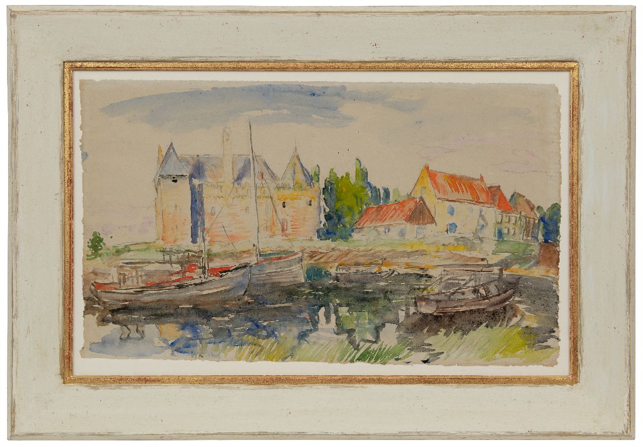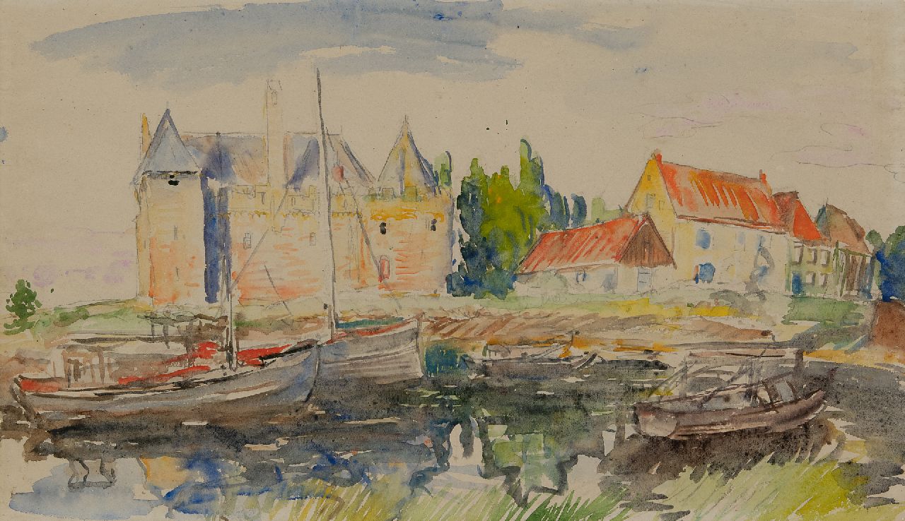 Johan Dijkstra Kunstwerk • Aquarell • Zeichnung • zu verkaufen Blick auf Schloss Radboud in Medemblik