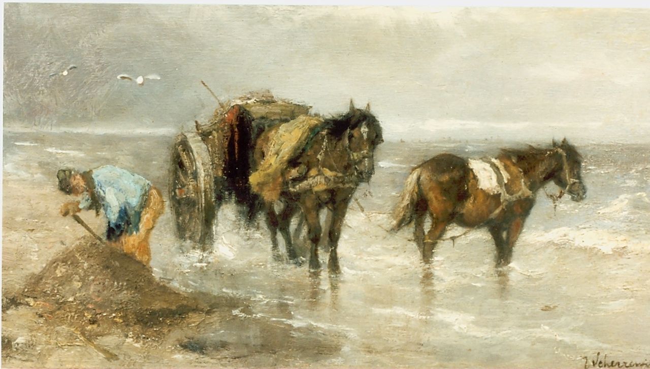 Johan Frederik Cornelis Scherrewitz Kunstwerk • Gemälde • zuvor zu verkaufen A shell fisher in the breakers