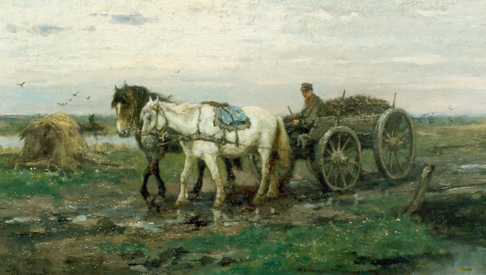 Johan Frederik Cornelis Scherrewitz Kunstwerk • Gemälde • zuvor zu verkaufen Farmer with a horse-drawn cart