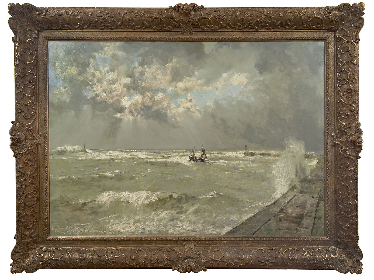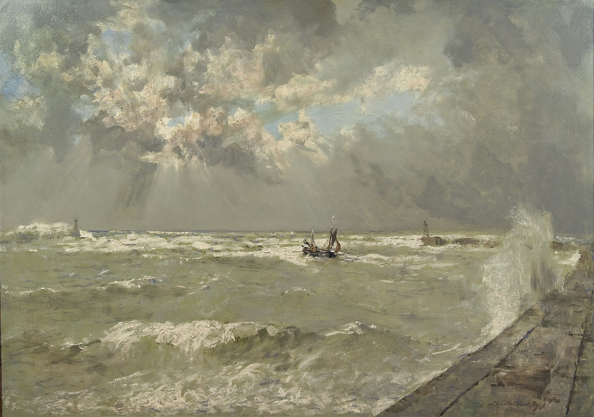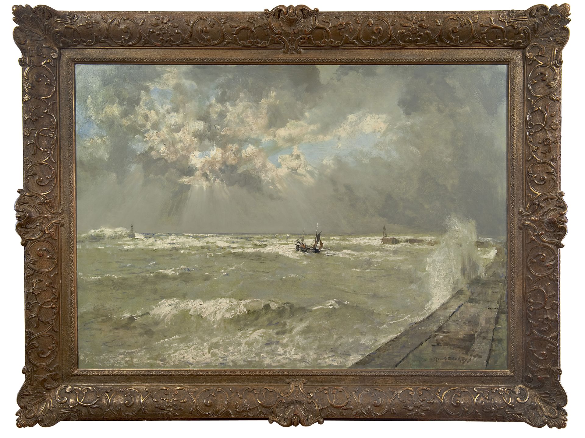 Johan Hendrik van Mastenbroek Kunstwerk • Gemälde • zuvor zu verkaufen A lugger in choppy waters, Scheveningen harbour