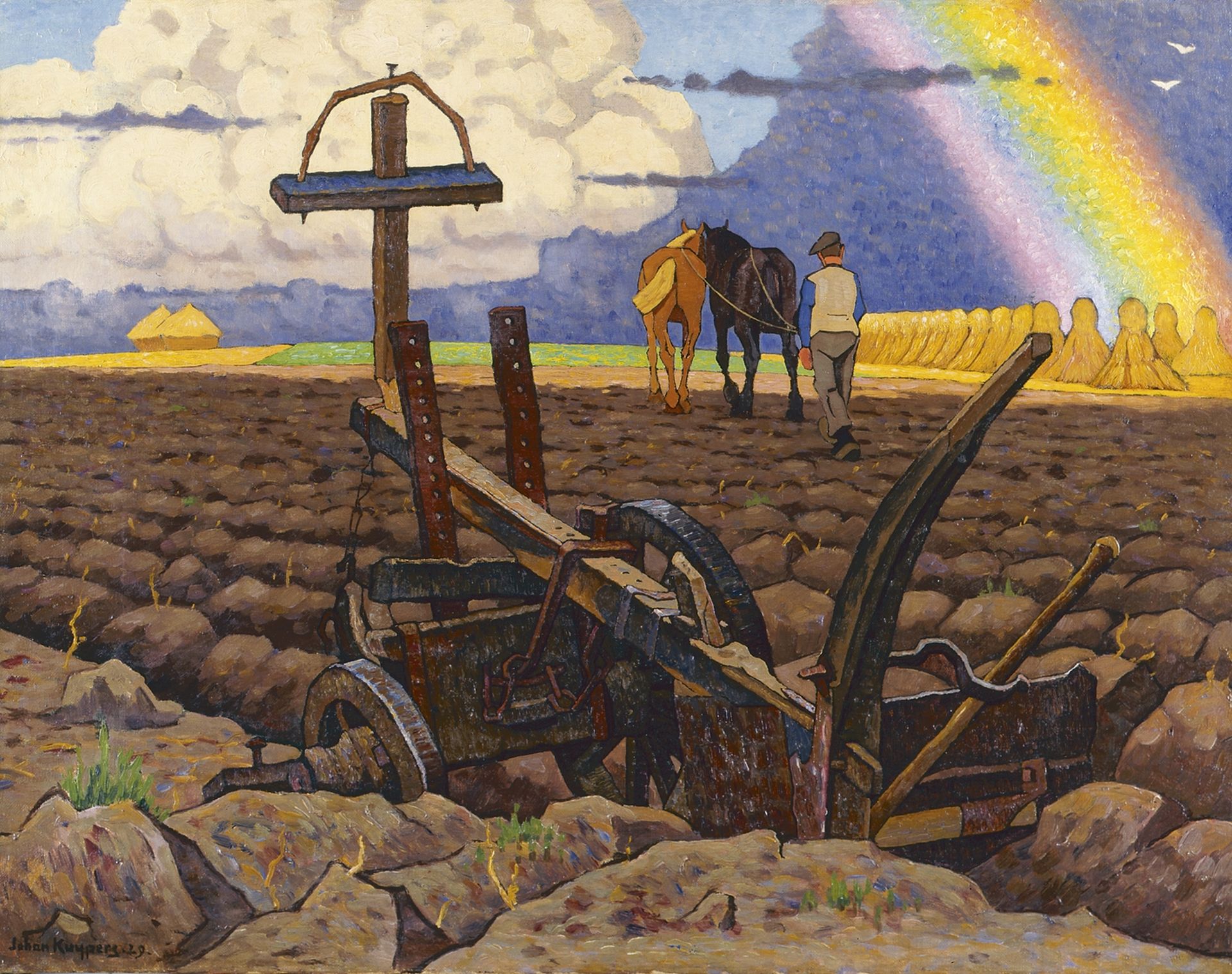 Kuijpers J.C.E.  | 'Johan' Cornelis Eliza Kuijpers, Ploughing the fields, Öl auf Leinwand 58,5 x 74,7 cm, signed l.l. und dated '29