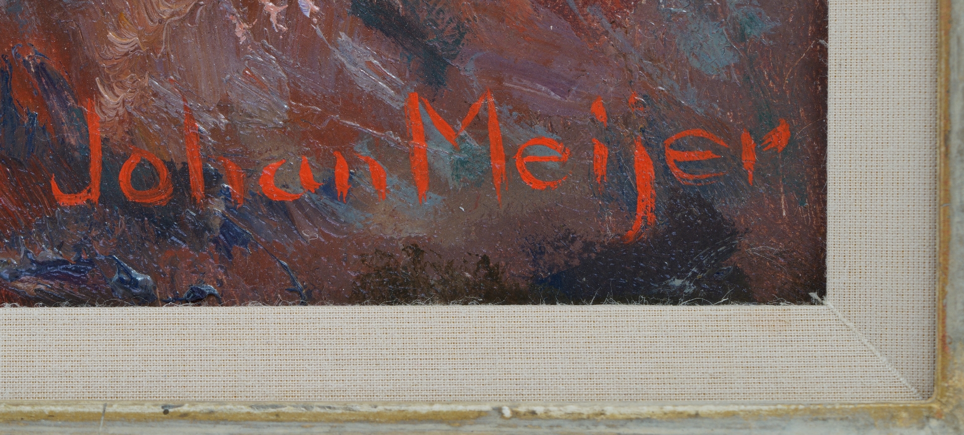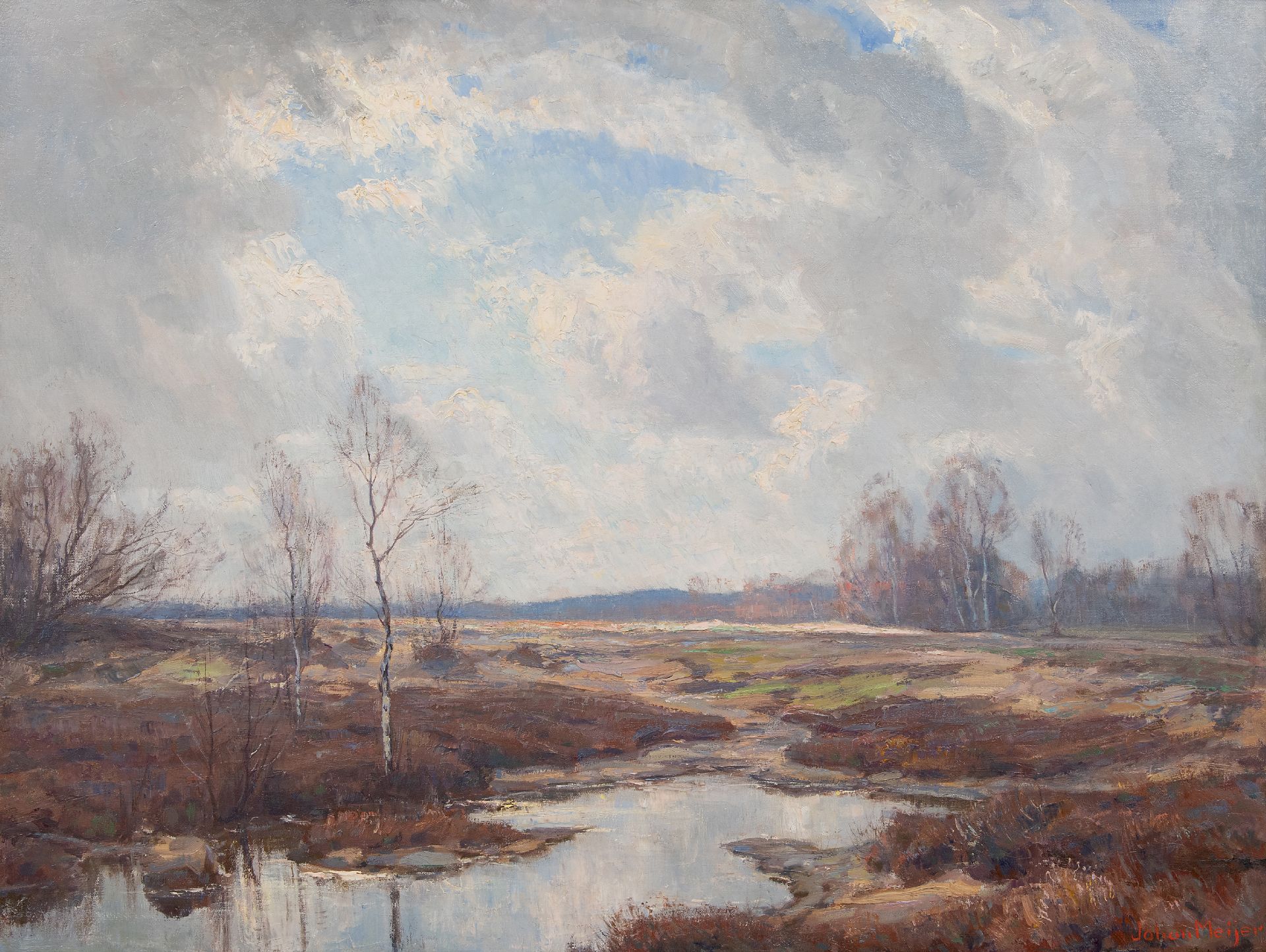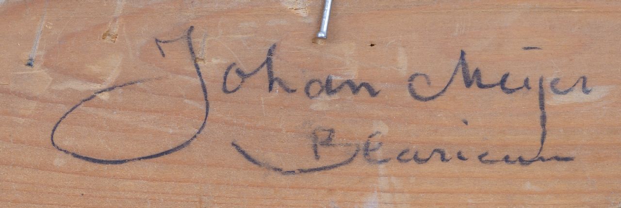 Johan Meijer wurde in Amsterdam geboren und ließ sich 1912 im Gooi, zuerst in Laren und dann in Blaricum, in der Villa 'Le Paradou' nieder. Er ging oft hinaus, um die Natur zu malen, vorzugsweise Landschaften mit Bäumen von großer koloristischer Qualität. Er signierte die Sommergesichter in Rot, die Winter in Blau. Der Maler erhielt seine Ausbildung an der Akademie in Amsterdam und anschließend bei A.M. Gorter. Eine Studienreise nach Paris brachte ihn in Kontakt mit den Neo-Impressionisten, die sich in vielen seiner Gemälde wiederfinden.