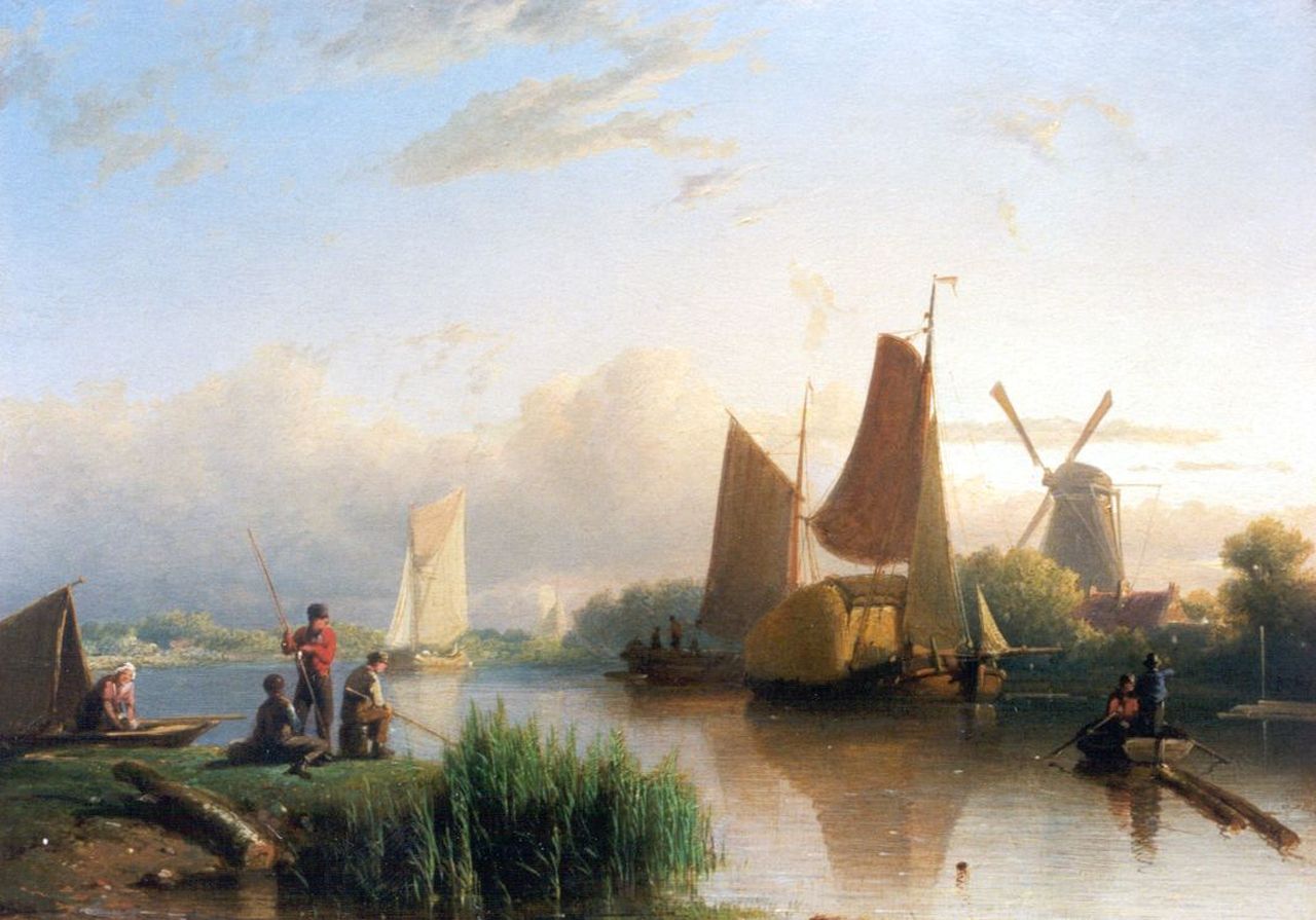 Johan Rust Kunstwerk • Gemälde • zuvor zu verkaufen Anglers in a river landscape