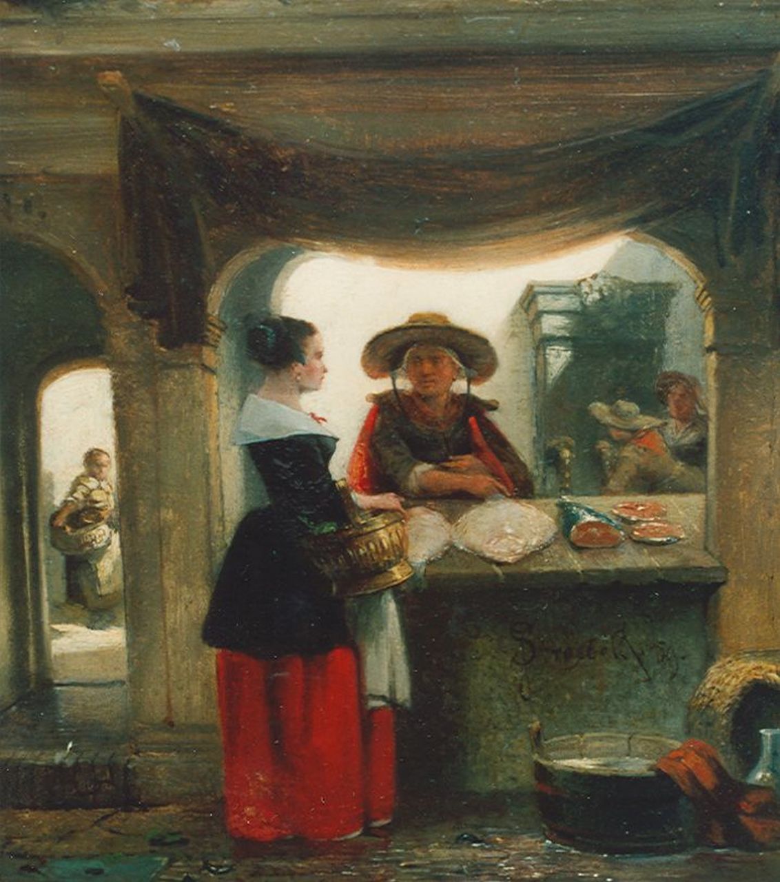 Johannes Anthonie Balthasar Stroebel Kunstwerk • Gemälde • zuvor zu verkaufen The fishmonger