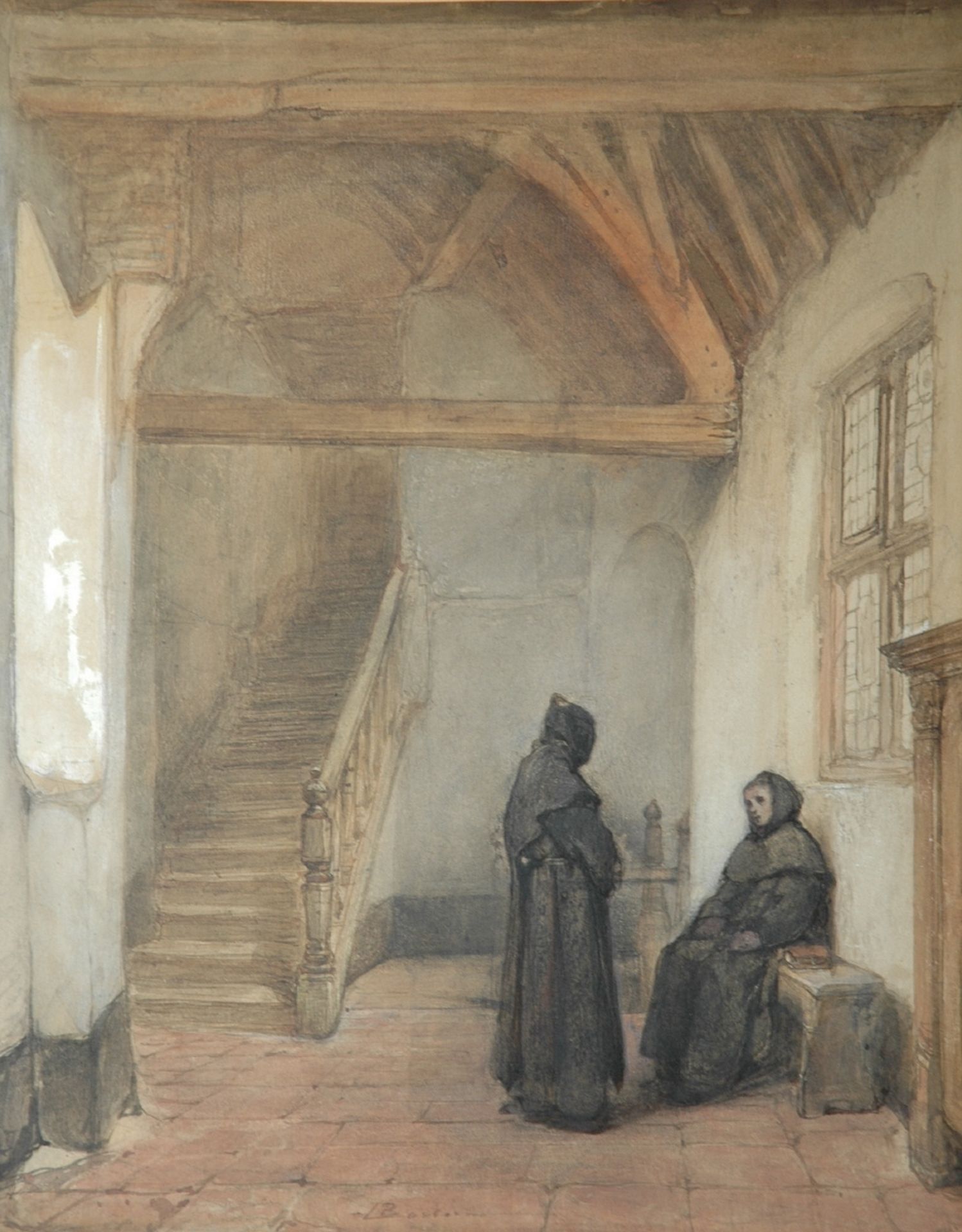 Johannes Bosboom Kunstwerk • Aquarell • Zeichnung • zuvor zu verkaufen In the convent in Boxmeer