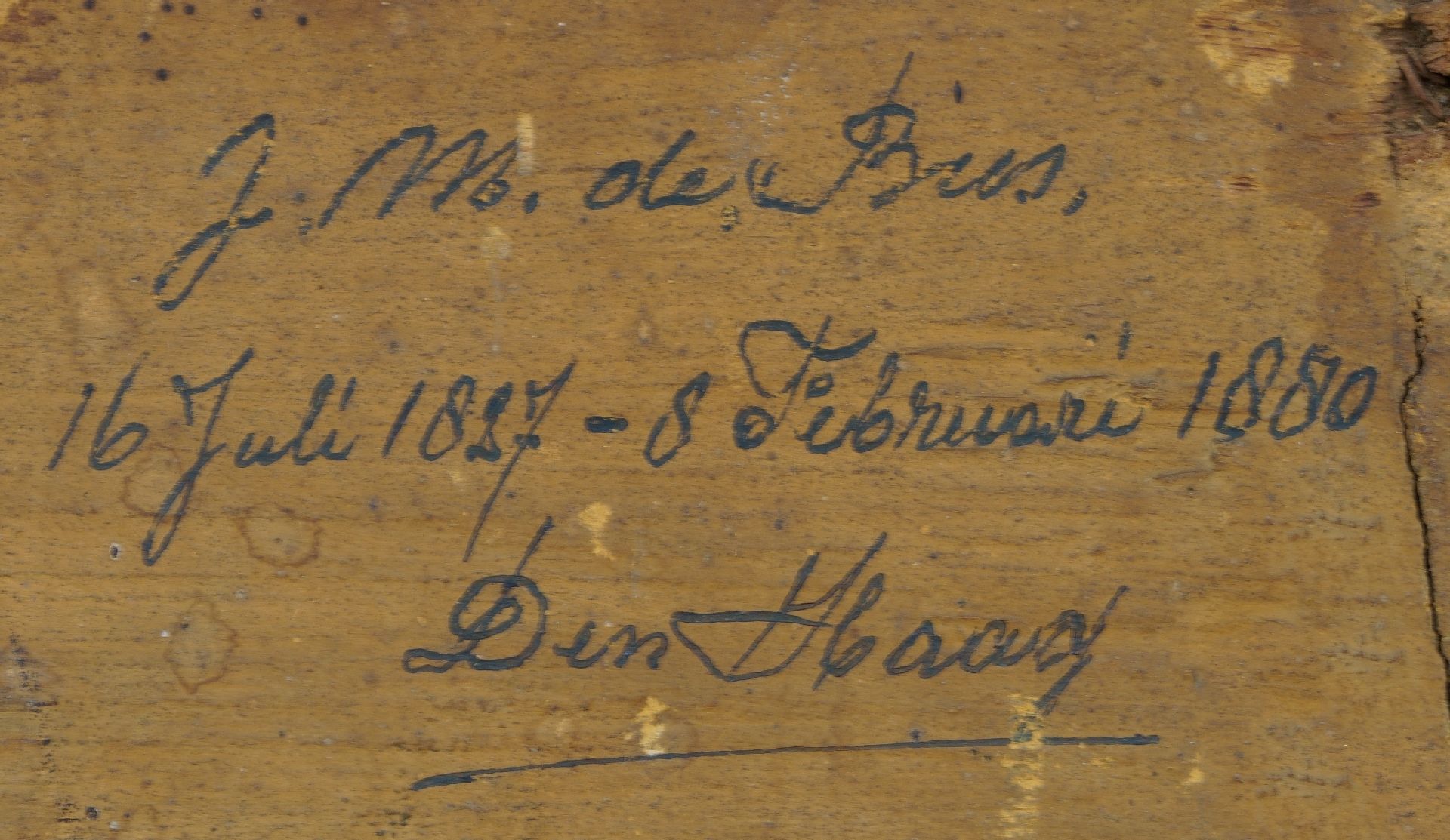 Johannes de Bus, geboren 1827, lebte und arbeitete sein gesamtes Leben in Den Haag. Über seine Malerfreunde und Lehrer ist wenig bekannt. Das Werk des Malers besteht hauptsächlich aus Figuren, Genreszenen und (Dünen-) Landschaften. Vermutlich besuchte er regelmäßig die Dünen und das Fischerdorf Scheveningen. Der Haager Maler starb im Alter von 53 Jahren.