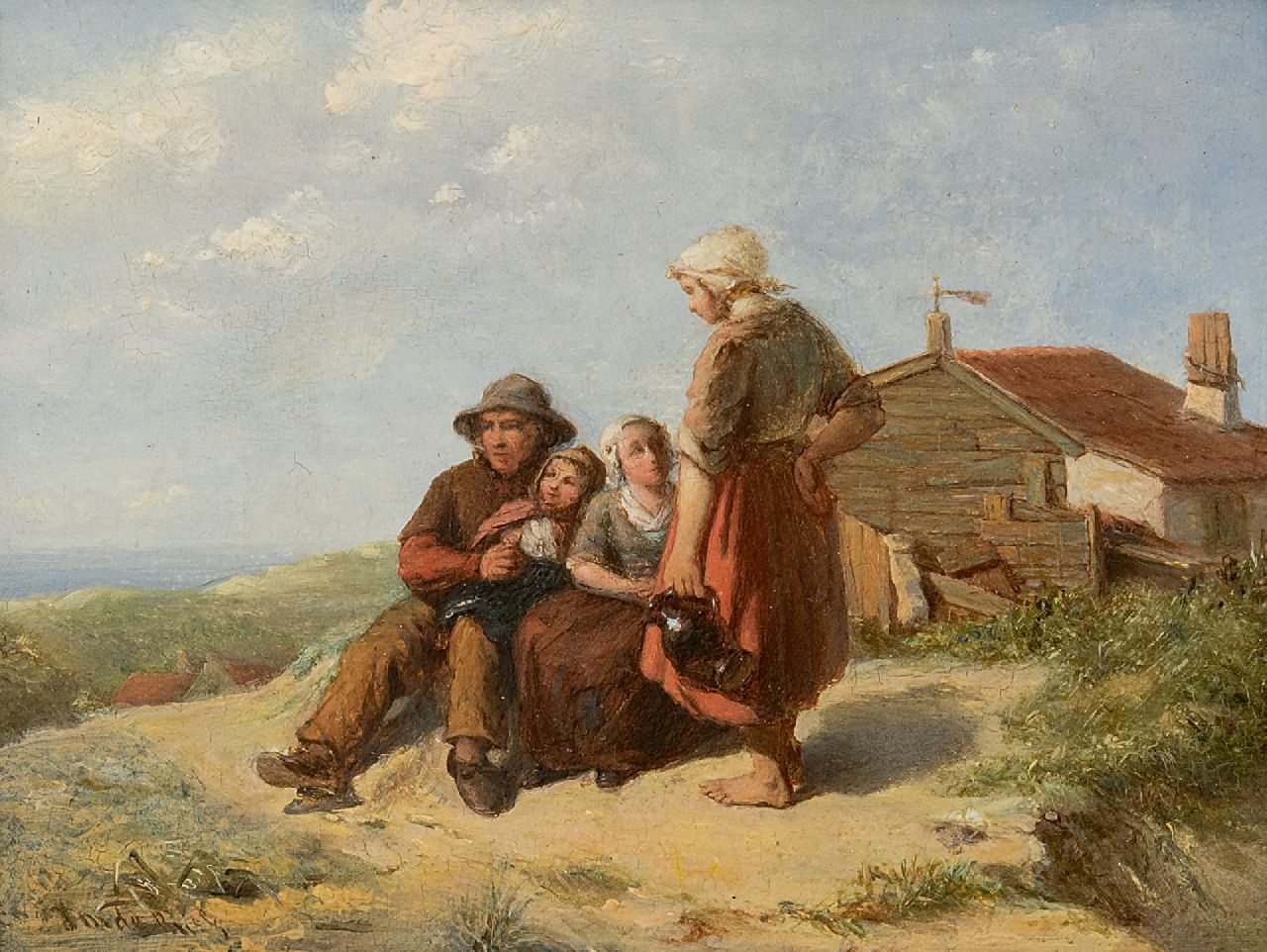 Johannes de Bus Kunstwerk • Gemälde • zuvor zu verkaufen Fischerfamilie in den Dünen