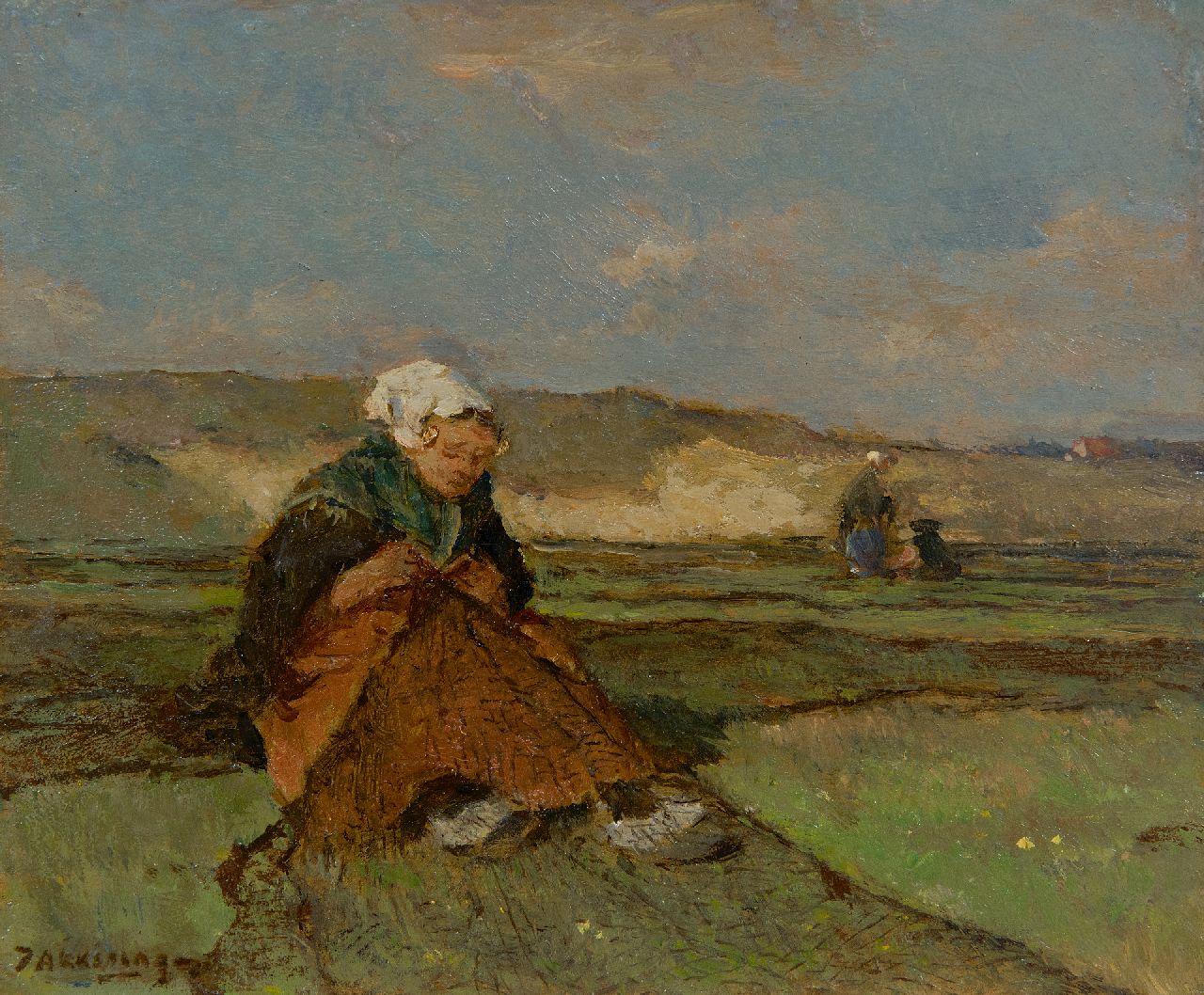 Johannes Evert Akkeringa Kunstwerk • Gemälde • zu verkaufen Reparieren von Fischernetzen in den Dünen