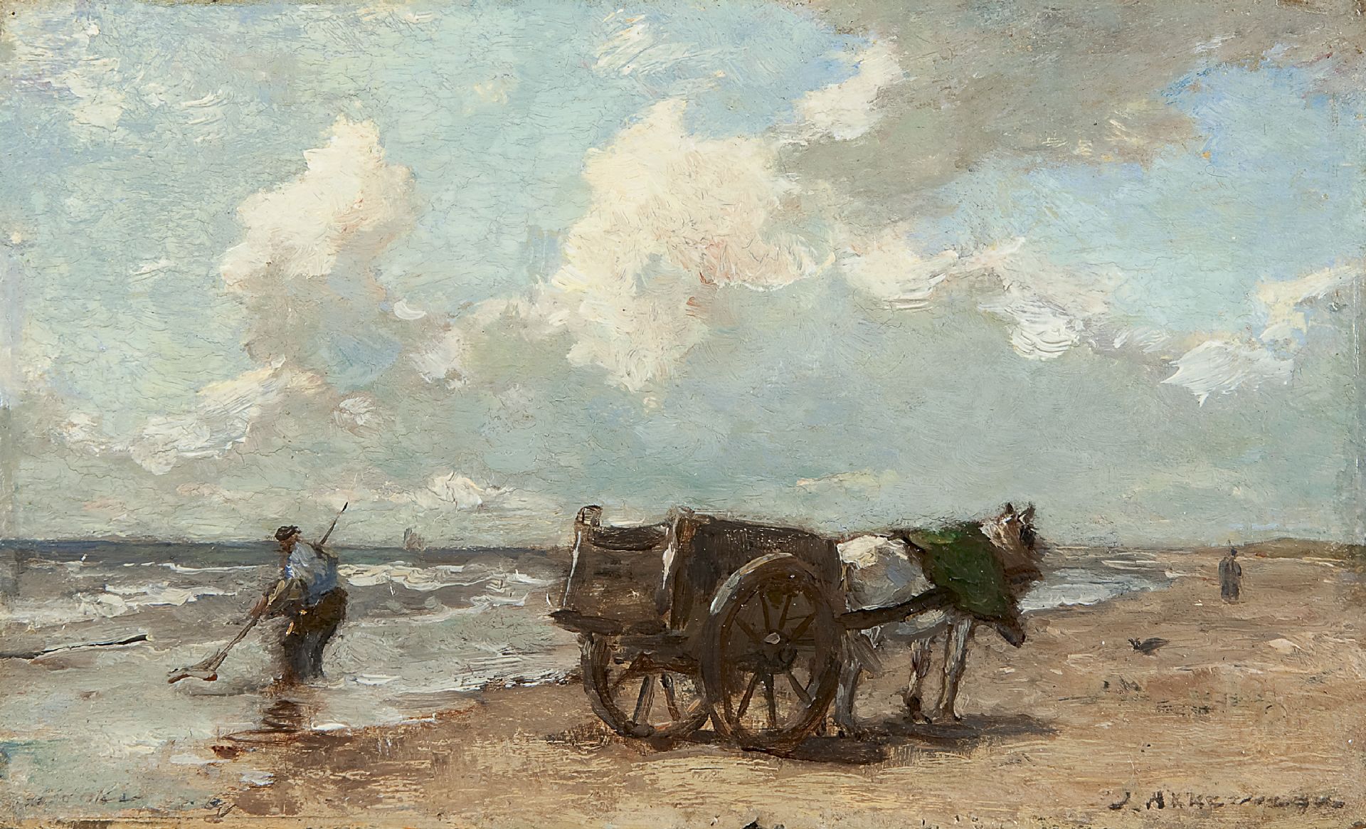 Johannes Evert Akkeringa Kunstwerk • Gemälde • zuvor zu verkaufen Shell fishing along the coast