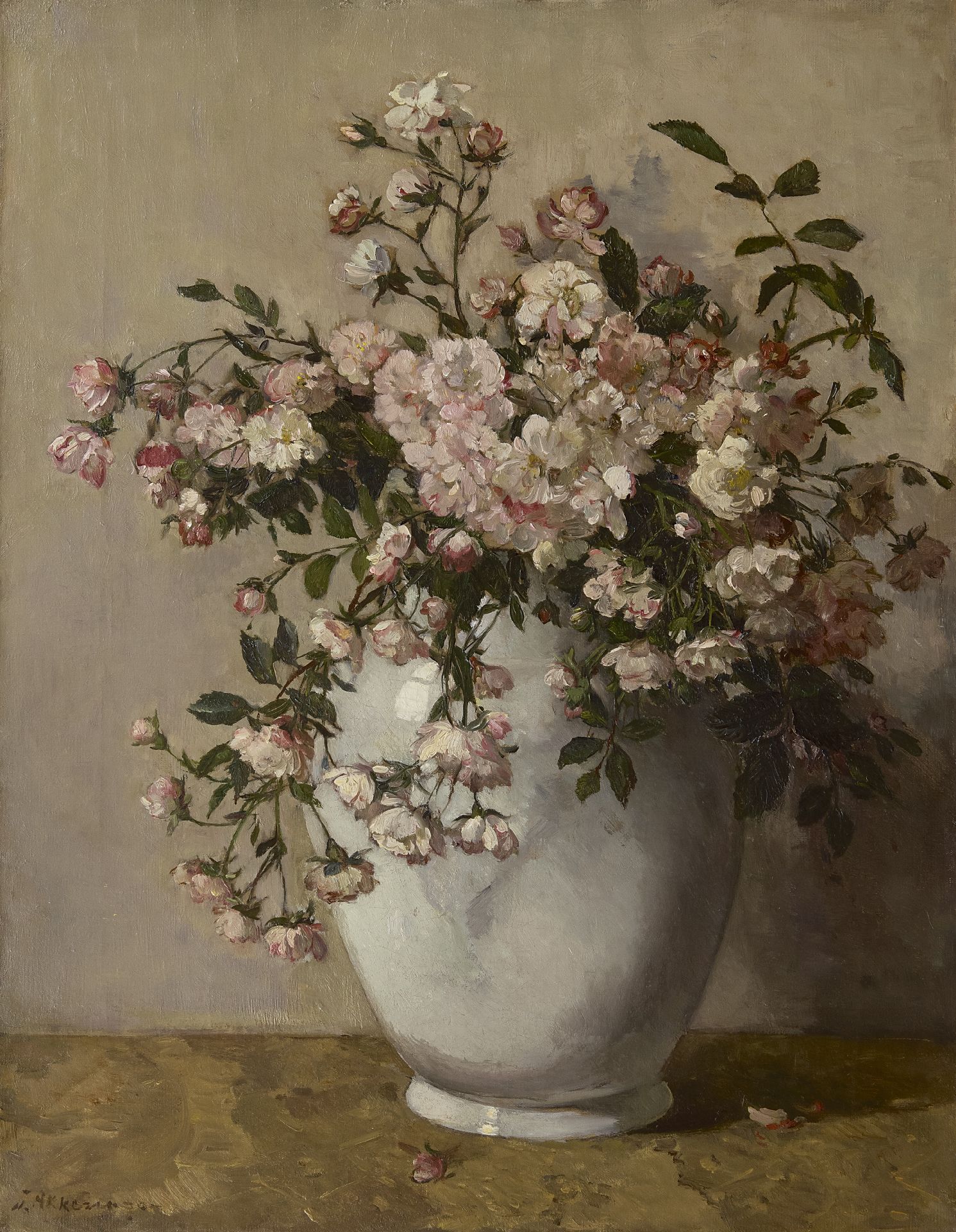 Johannes Evert Akkeringa Kunstwerk • Gemälde • zuvor zu verkaufen Weisser Topf mit Büschelrosen