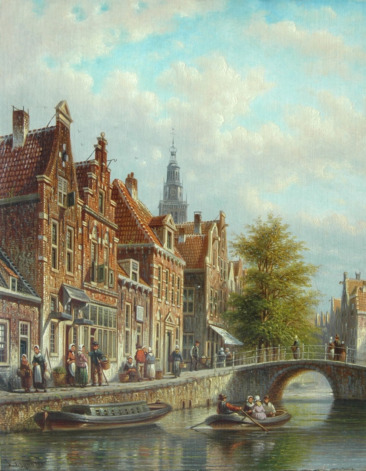 Johannes Franciscus Spohler Kunstwerk • Gemälde • zuvor zu verkaufen Dutch canal with the tower of the Waag, Alkmaar