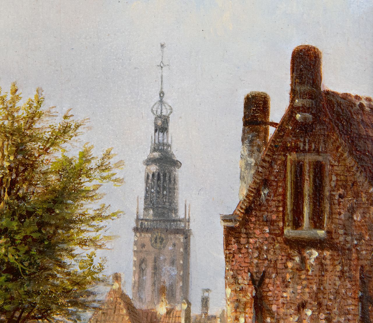 Johannes Franciscus Spohler Kunstwerk • Gemälde • zu verkaufen Sommerliche Stadtansicht mit dem Turm der Bakenesserkert von Haarlem