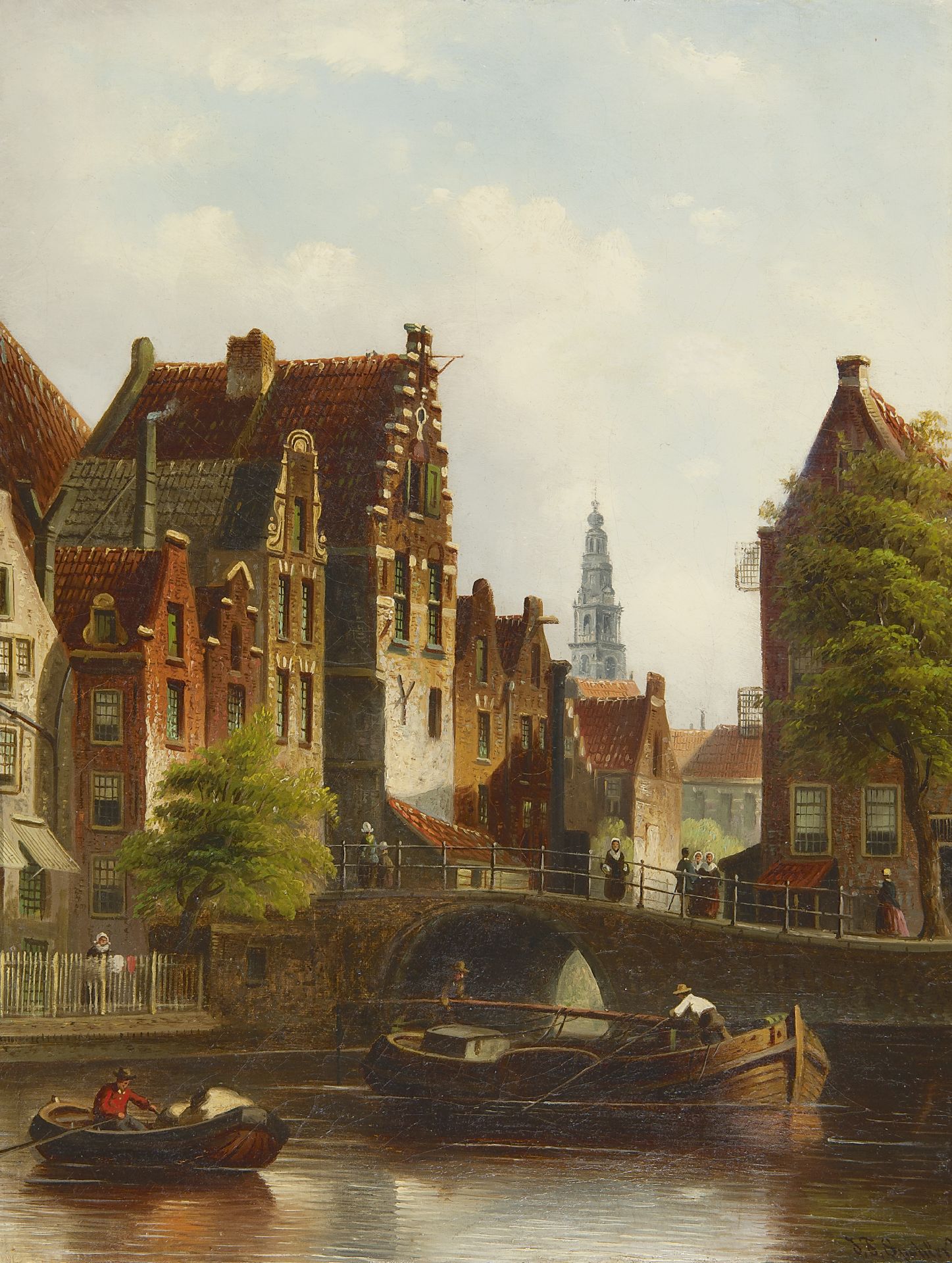 Johannes Franciscus Spohler Kunstwerk • Gemälde • zuvor zu verkaufen Ansicht auf die Grimnesschleuse, Amsterdam