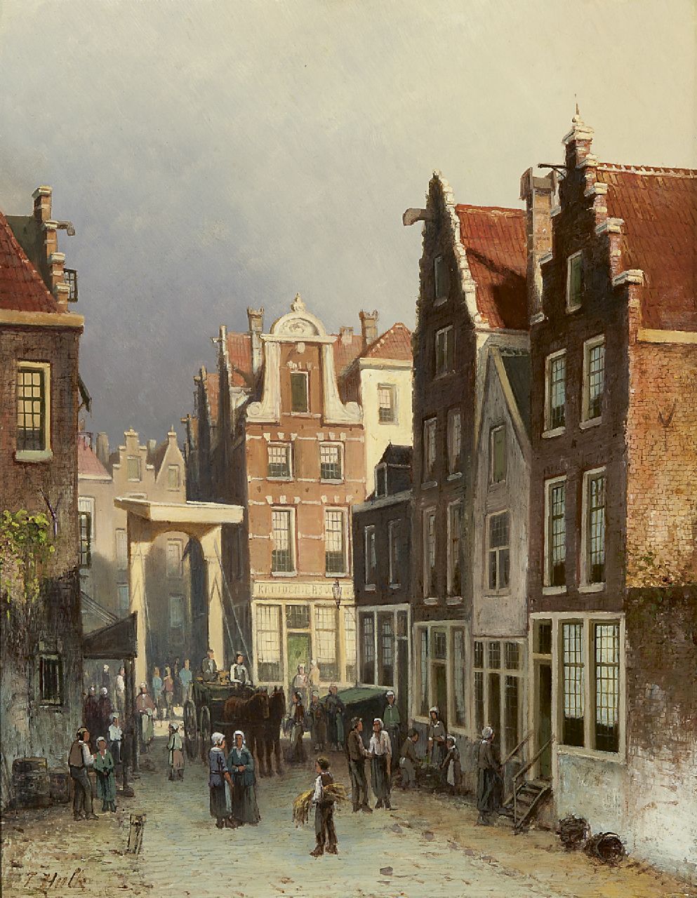 Johannes Frederik Hulk Kunstwerk • Gemälde • zuvor zu verkaufen Holländische Gasse mit einer Fallbrücke
