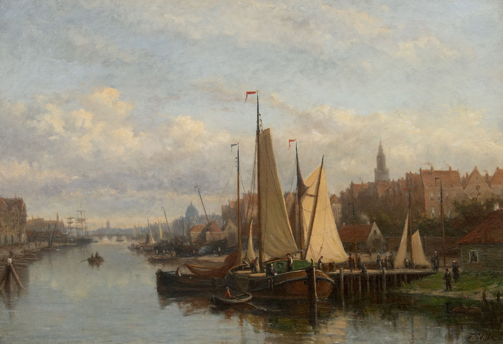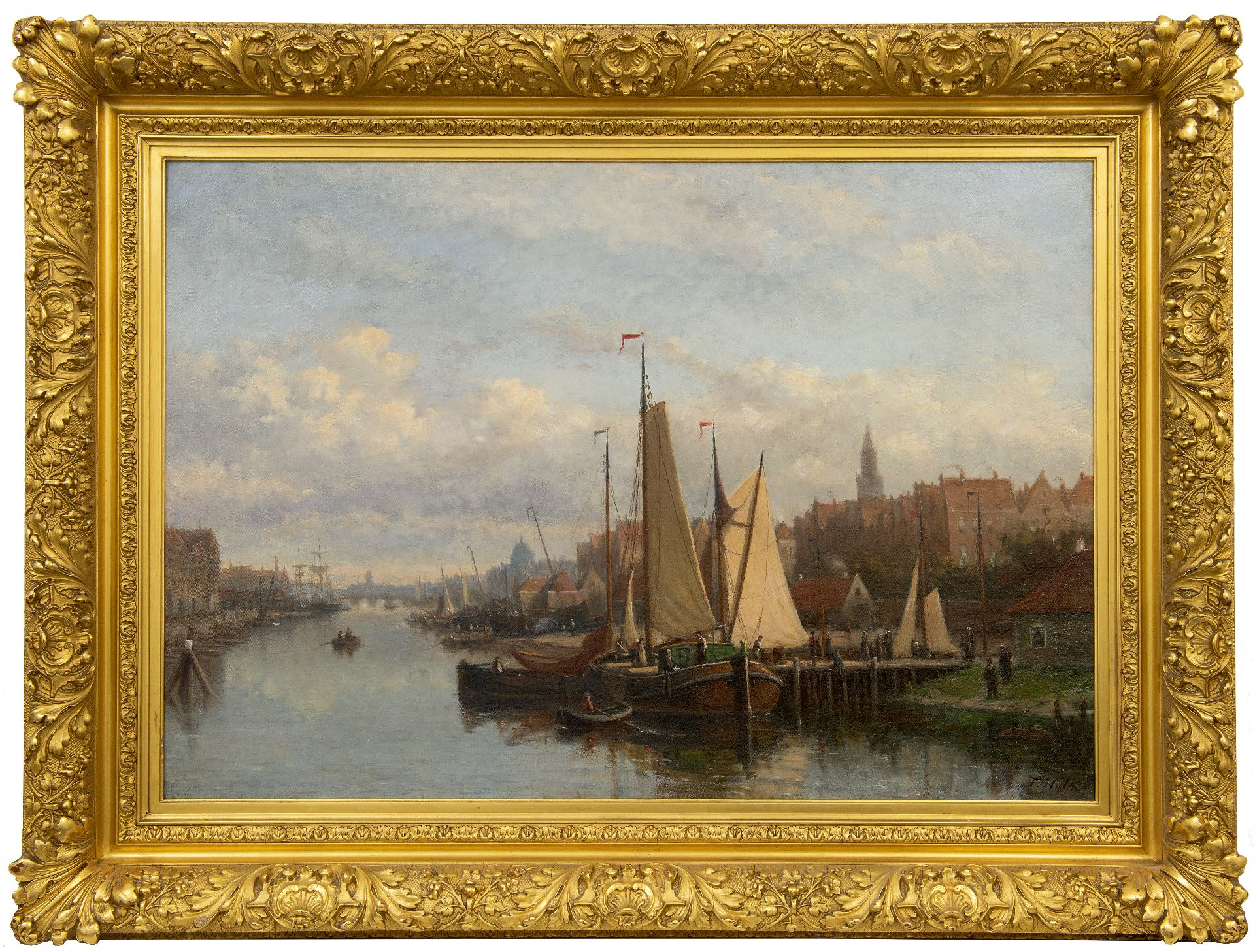 Johannes Frederik Hulk Kunstwerk • Gemälde • zu verkaufen Holländischer Binnenhafen