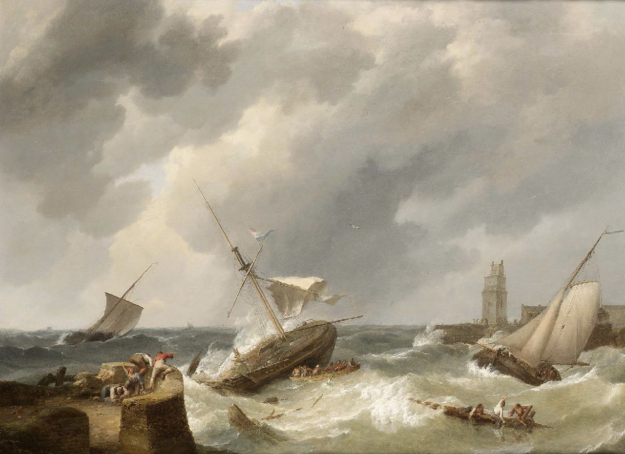 Johannes Hermanus Koekkoek Kunstwerk • Gemälde • zuvor zu verkaufen Dutch barges caught in a squall