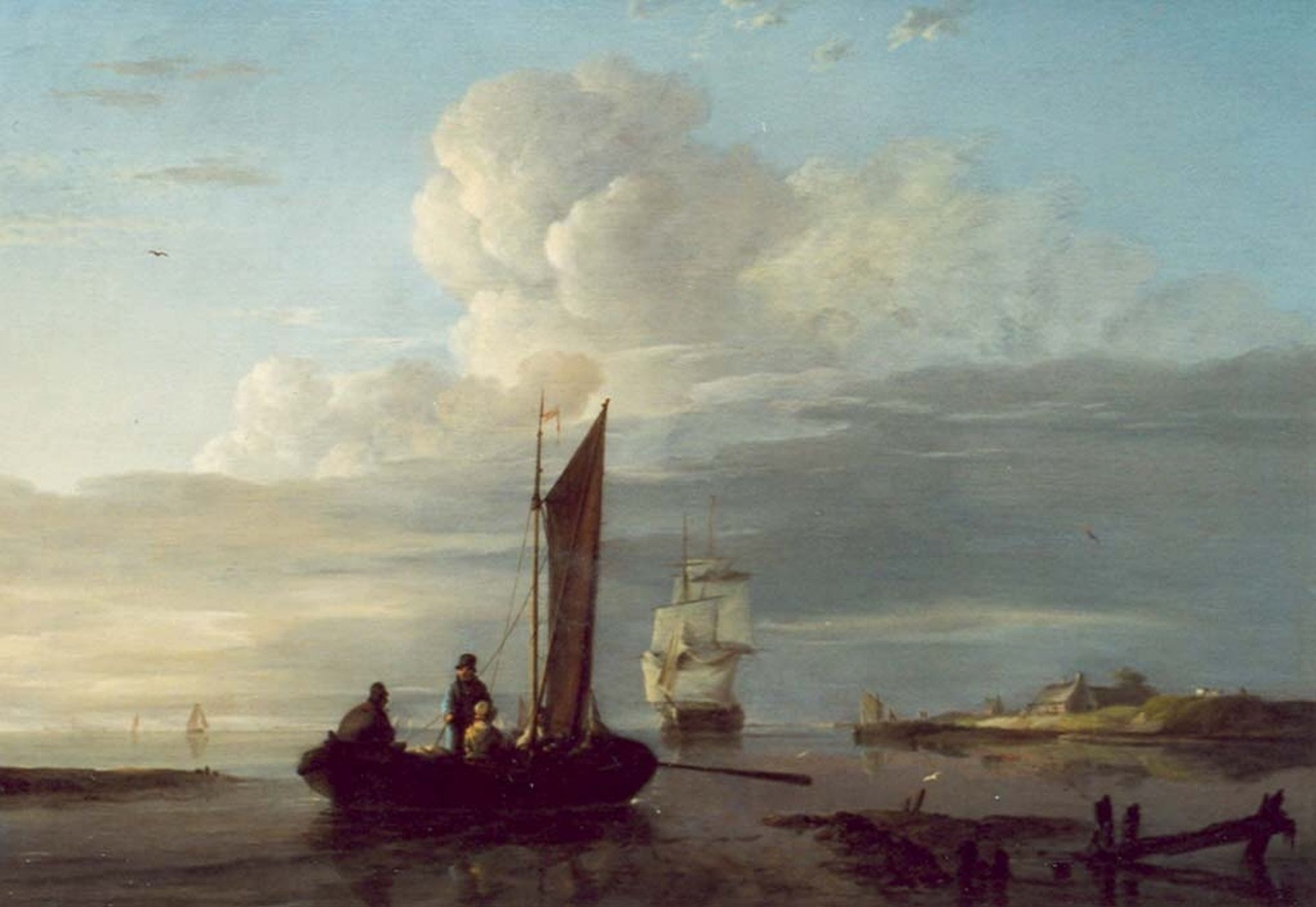 Johannes Hermanus Koekkoek Kunstwerk • Gemälde • zuvor zu verkaufen Sailing vessels on an estuary