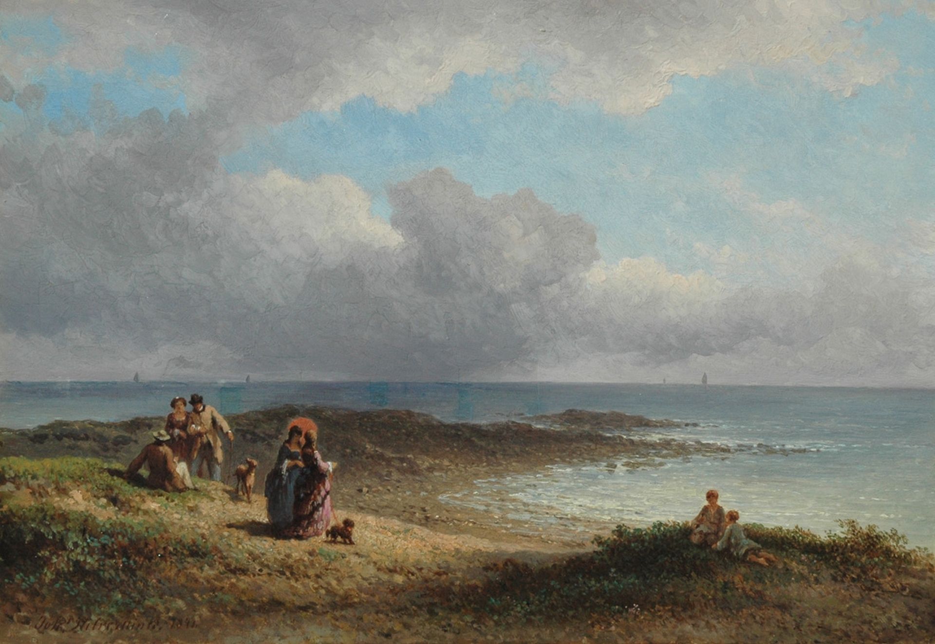 Johannes Hilverdink Kunstwerk • Gemälde • zuvor zu verkaufen Elegant figures at the French coast