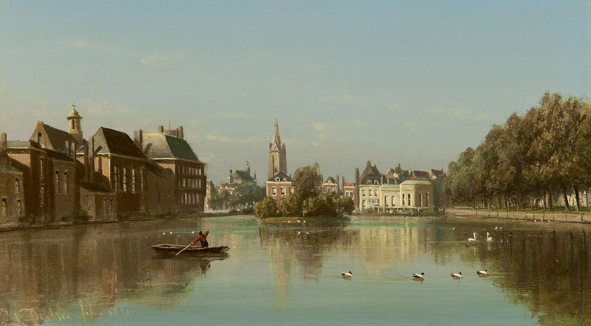 Johannes Josephus Destrée Kunstwerk • Gemälde • zuvor zu verkaufen The Hofvijver, The Hague