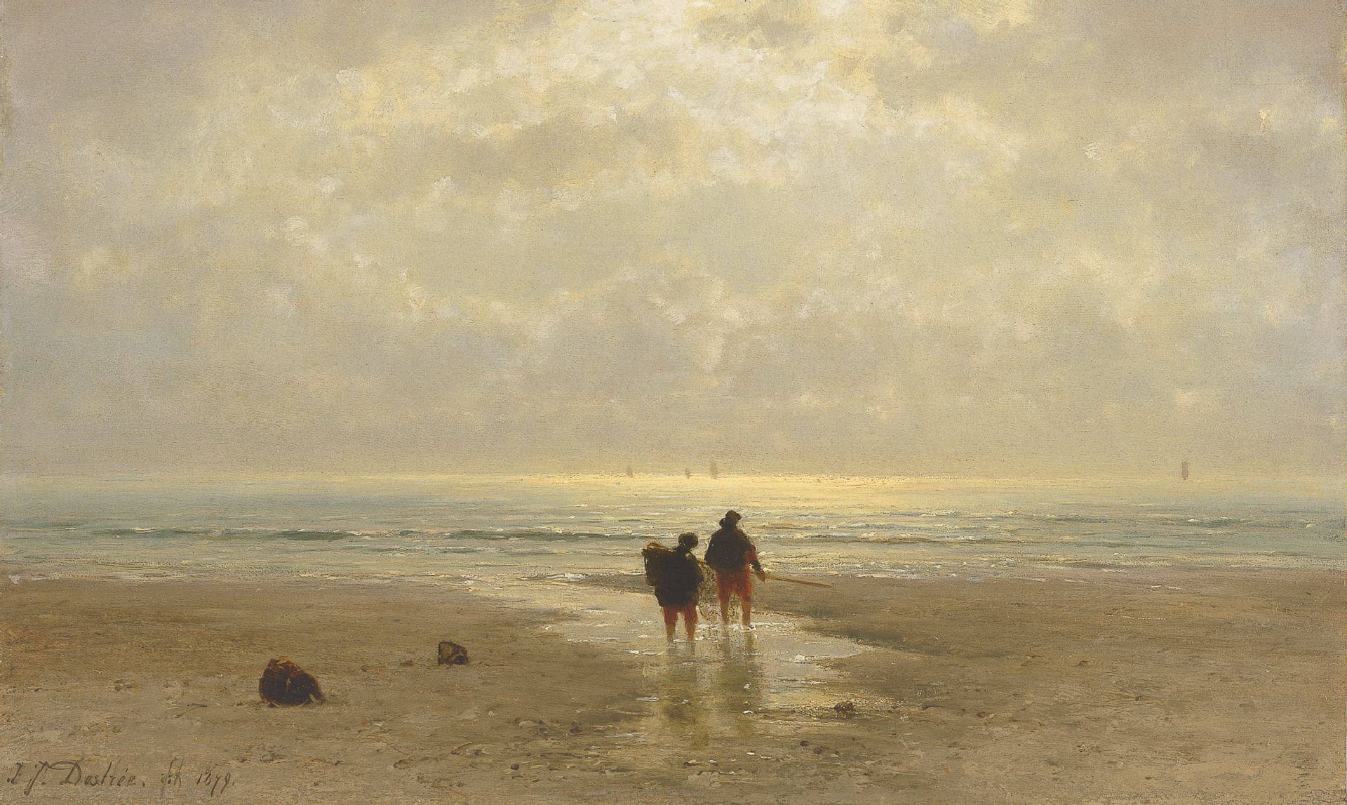 Johannes Josephus Destrée Kunstwerk • Gemälde • zuvor zu verkaufen Two shellgatherers on the beach at sunset