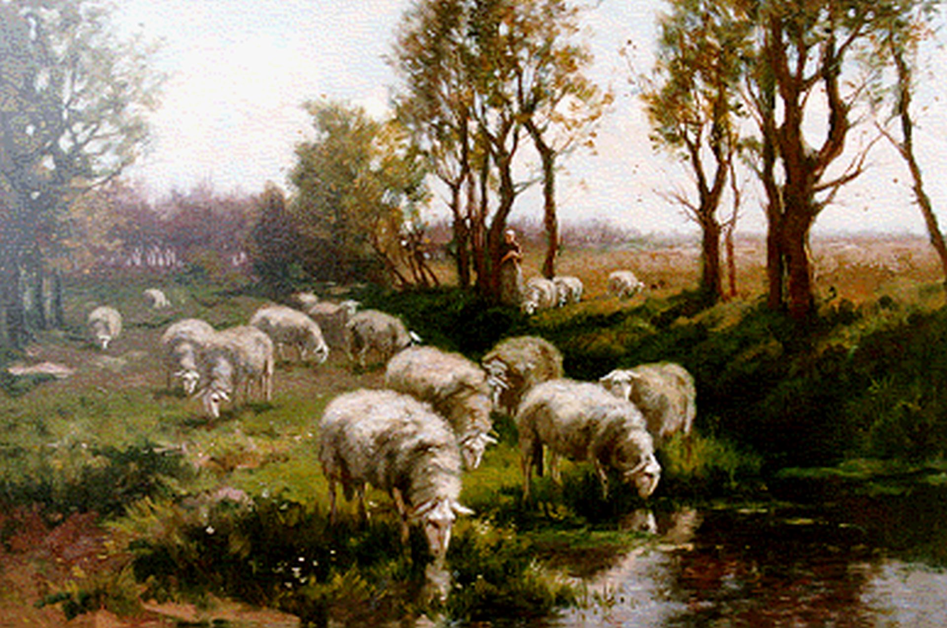 Johannes Karel Leurs Kunstwerk • Gemälde • zuvor zu verkaufen Shepherdess with flock