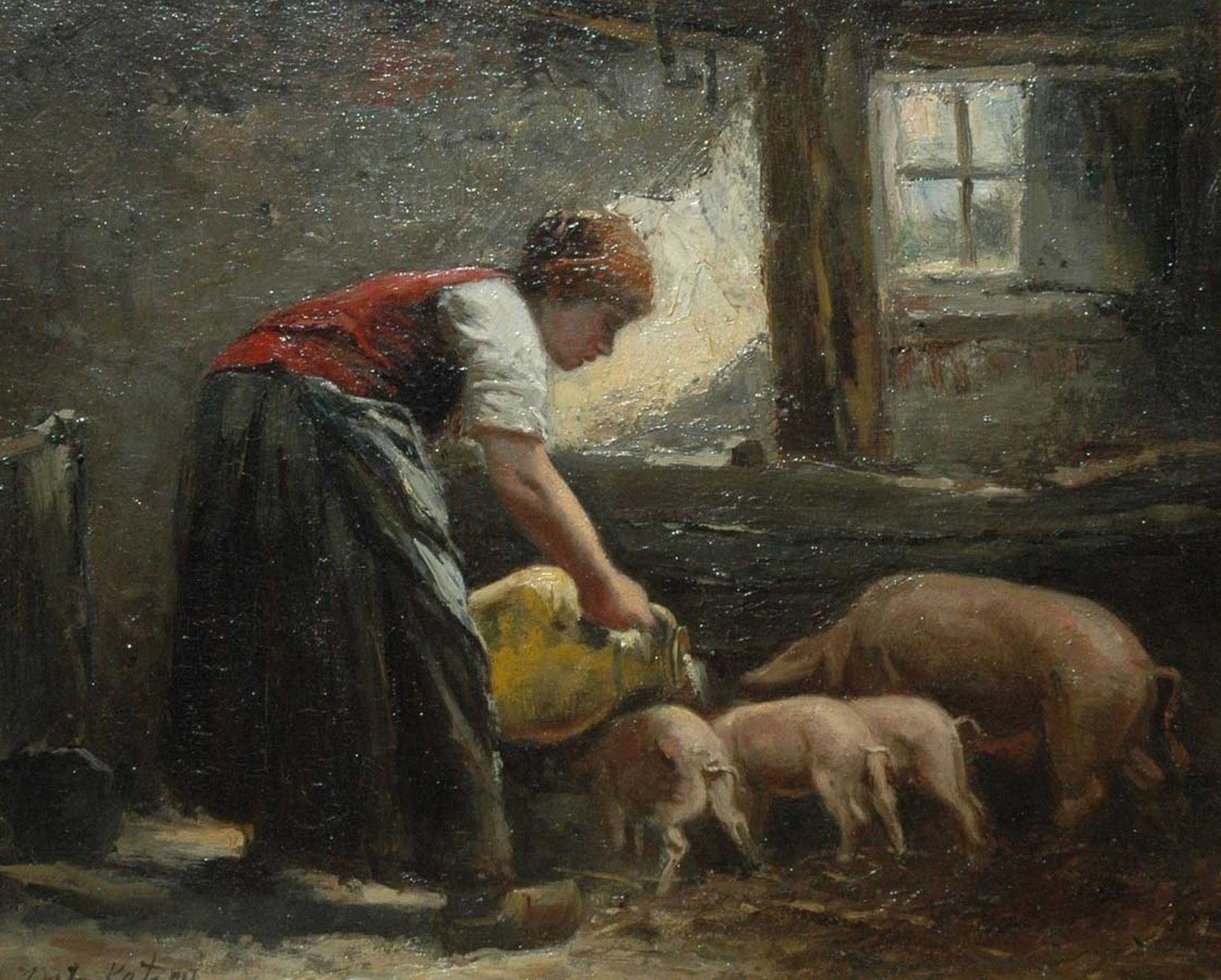 Johannes Marius ten Kate Kunstwerk • Gemälde • zuvor zu verkaufen Feeding time in the stables