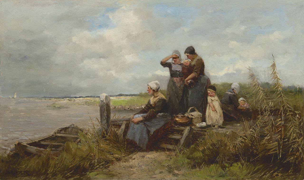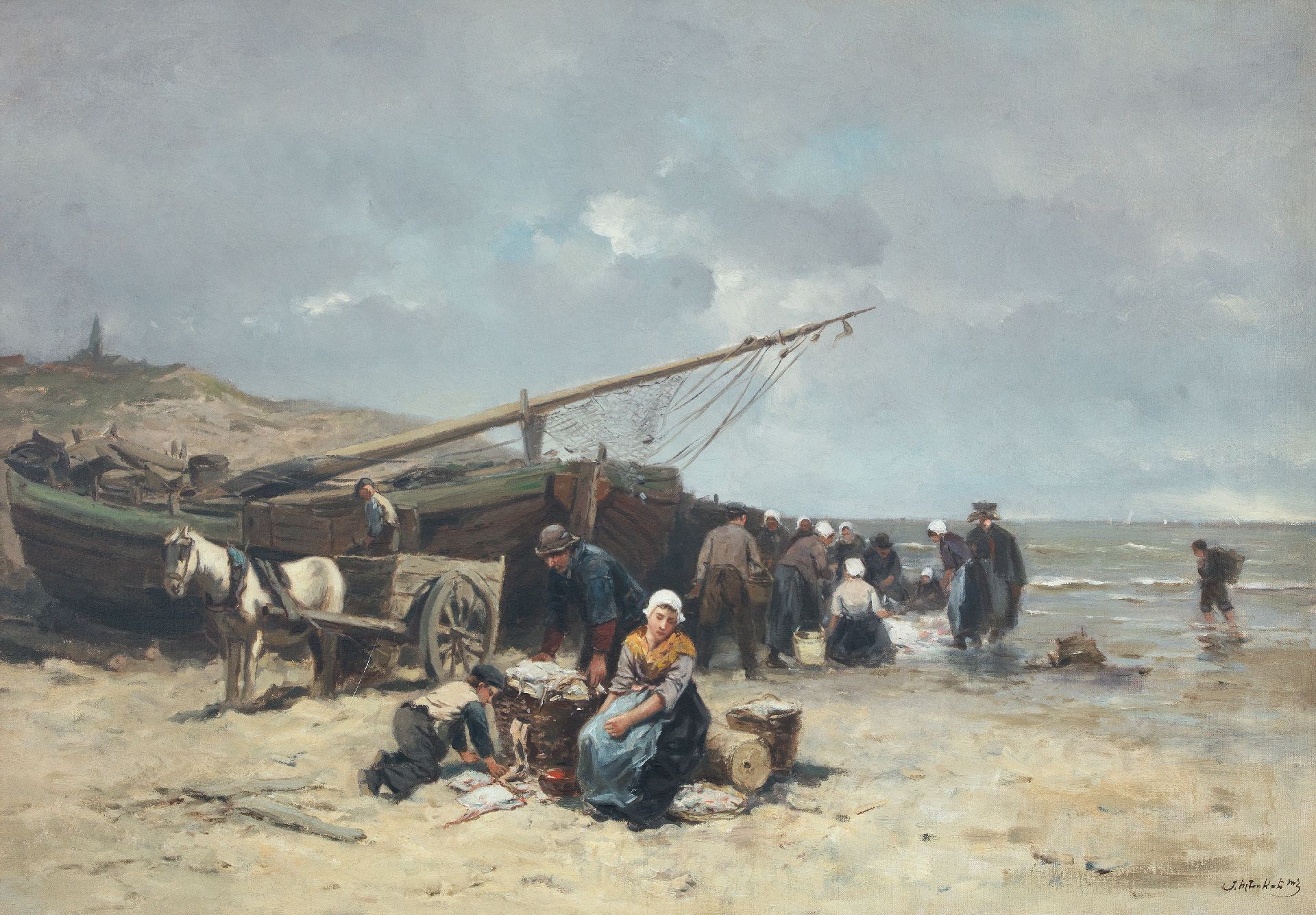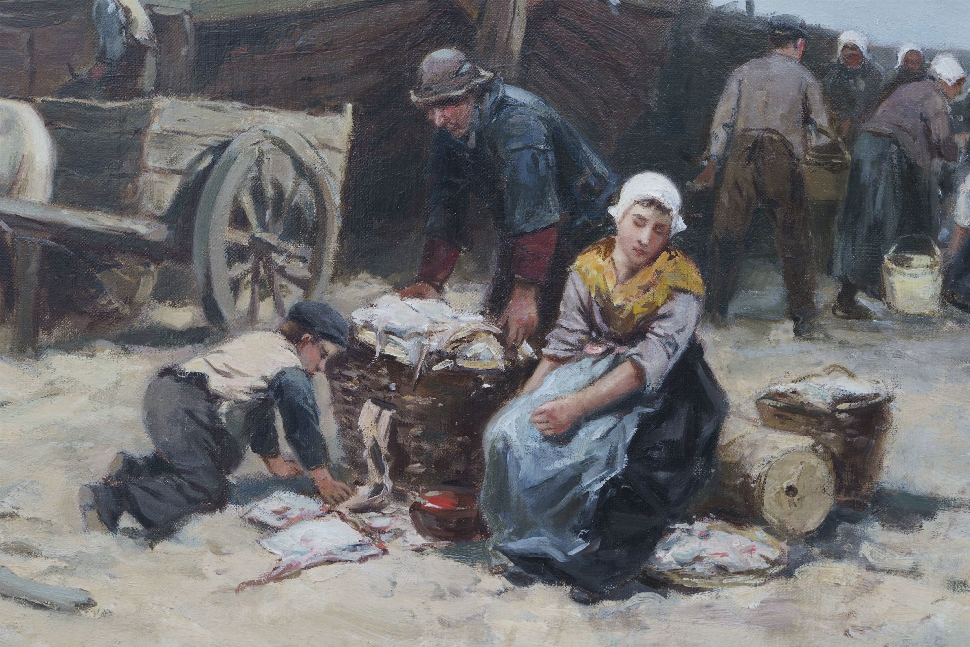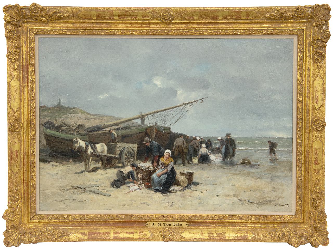 Johannes Marius ten Kate Kunstwerk • Gemälde • zu verkaufen Fischversteigerung auf dem Strand von Scheveningen