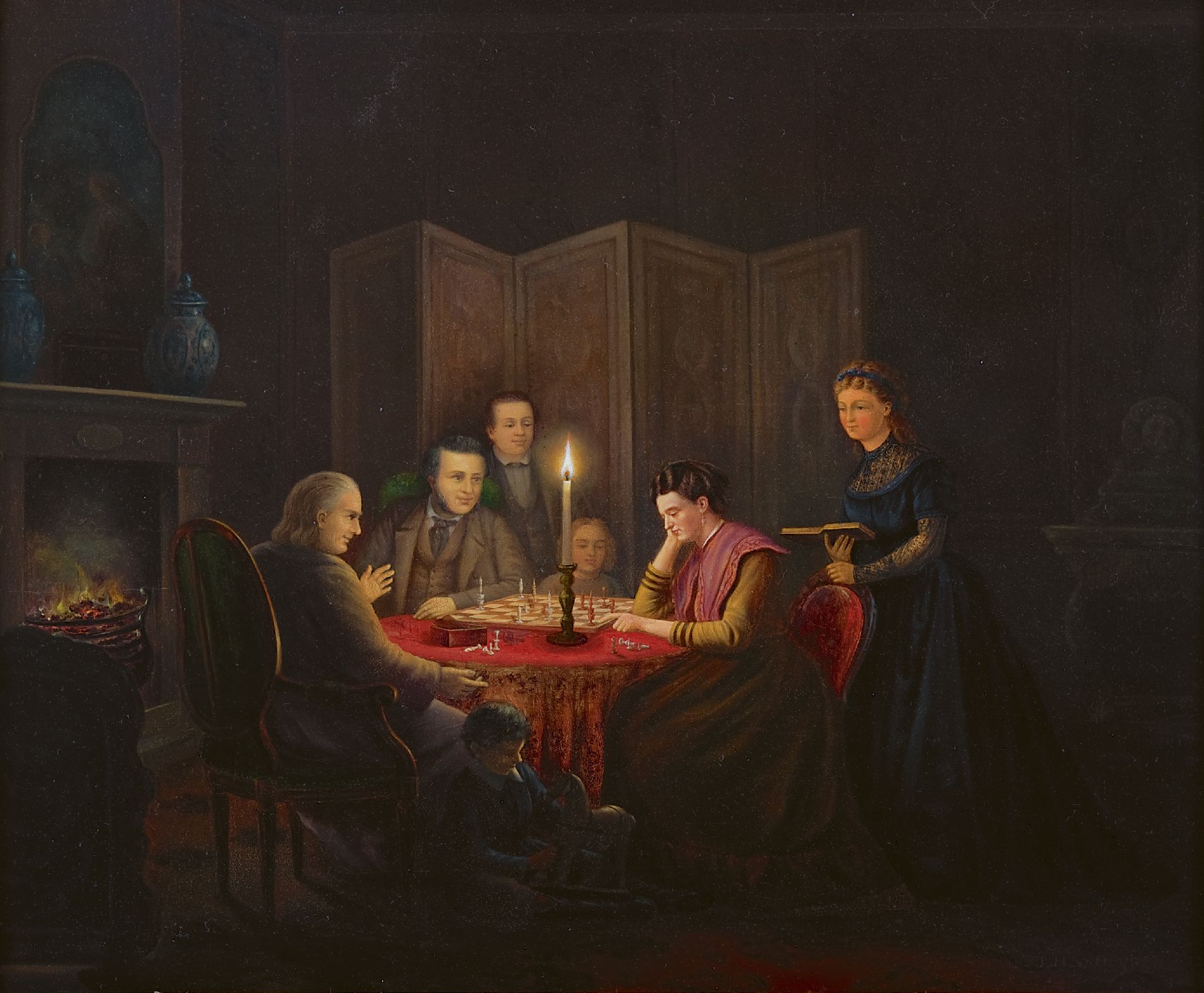 Johannes van der Heijden Kunstwerk • Gemälde • zuvor zu verkaufen Abendliches Schachspiel