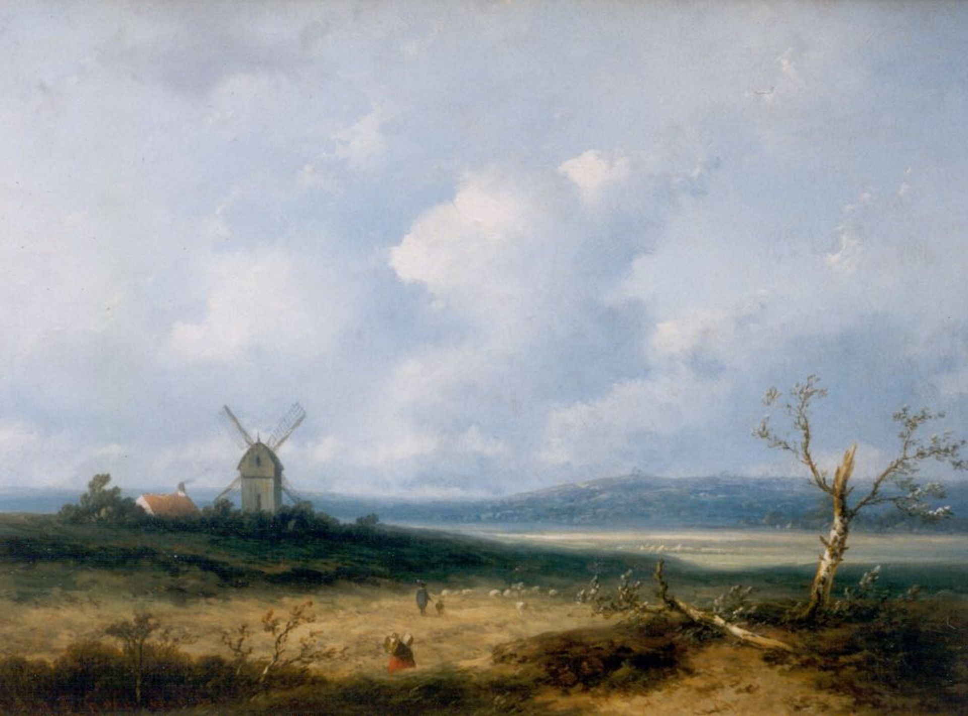 John Franciscus Hoppenbrouwers Kunstwerk • Gemälde • zuvor zu verkaufen A summer landscape with a shepherd and his flock