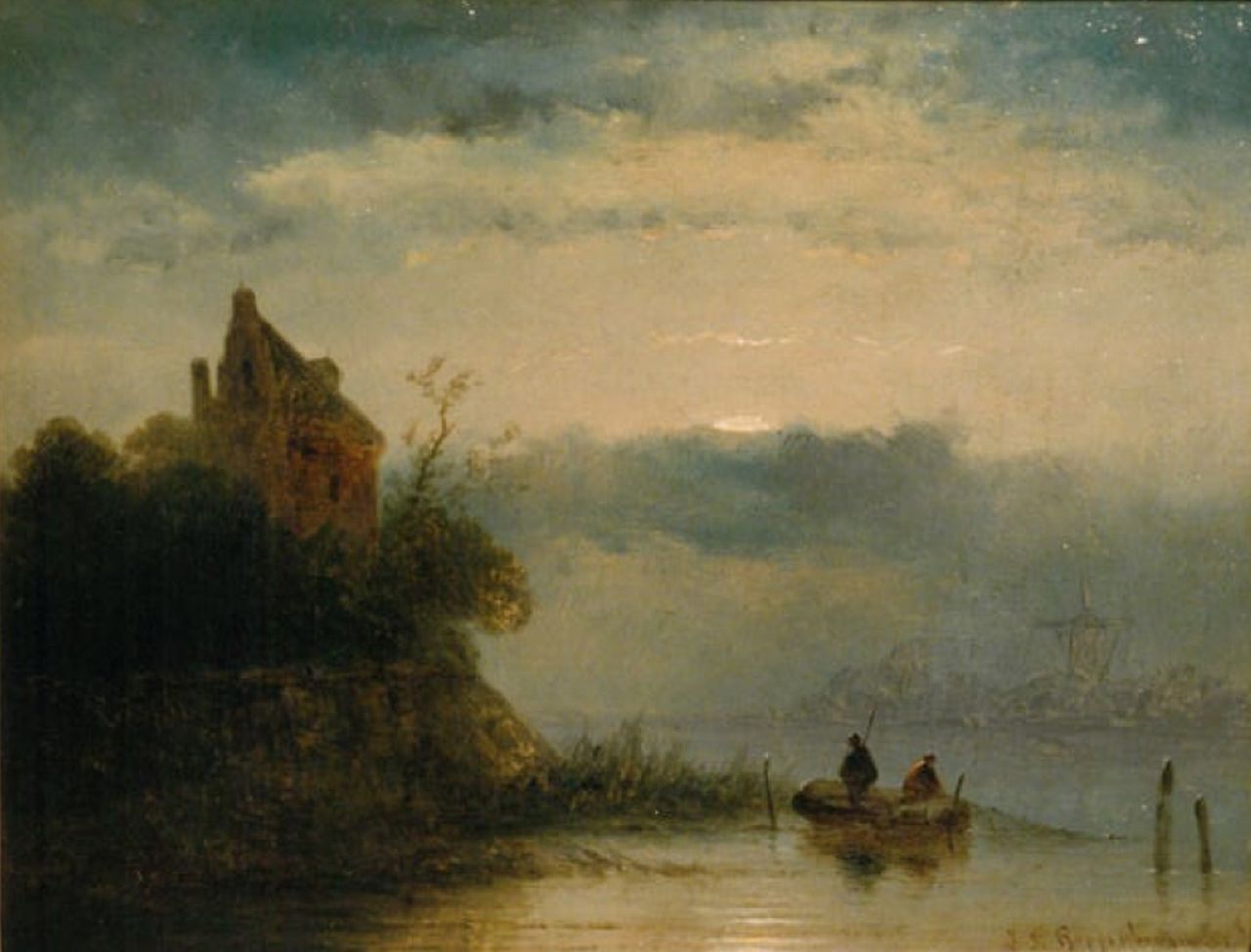 John Franciscus Hoppenbrouwers Kunstwerk • Gemälde • zuvor zu verkaufen Avondstemming op het ijs