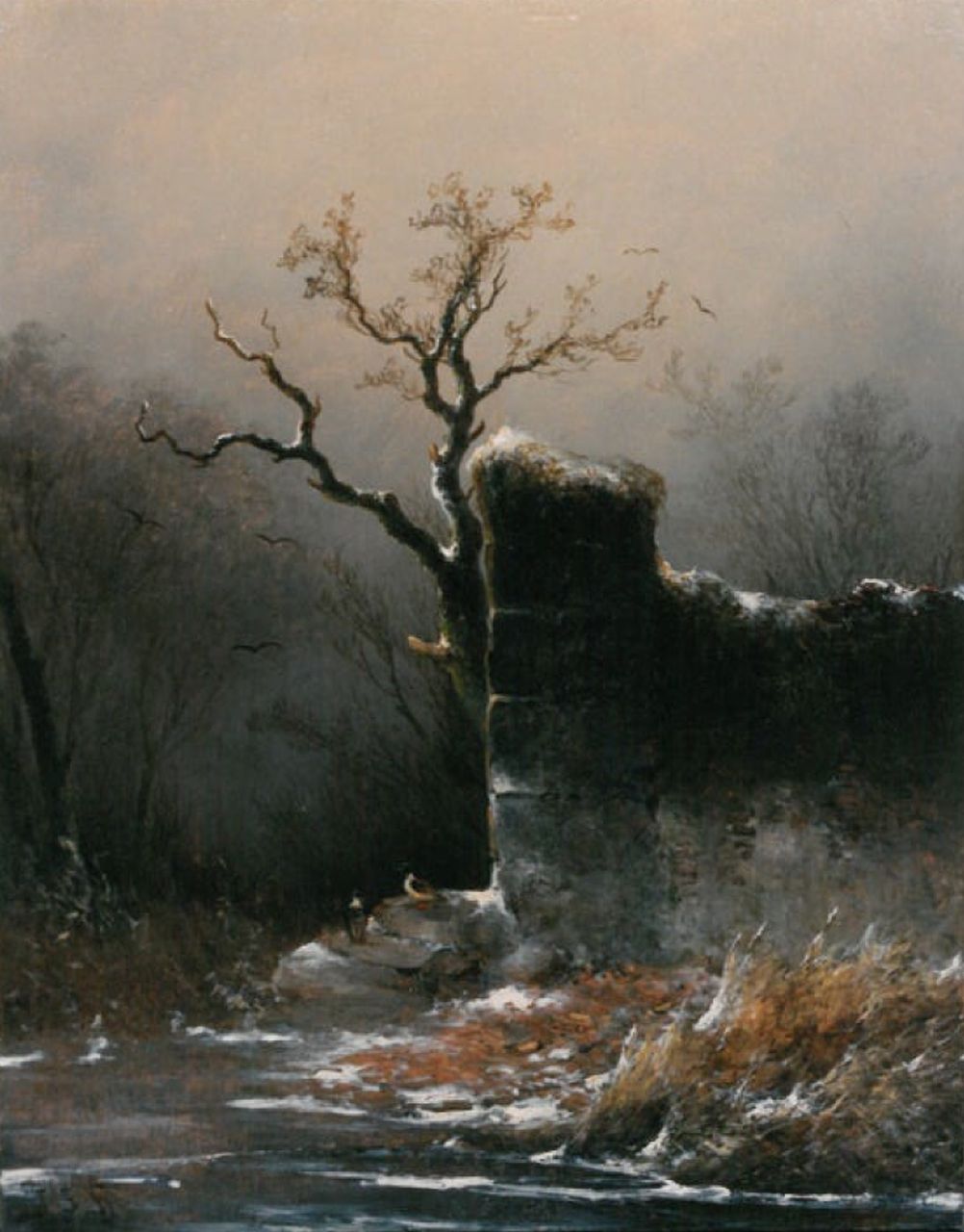 John Franciscus Hoppenbrouwers Kunstwerk • Gemälde • zuvor zu verkaufen Winterlandschap met ruine