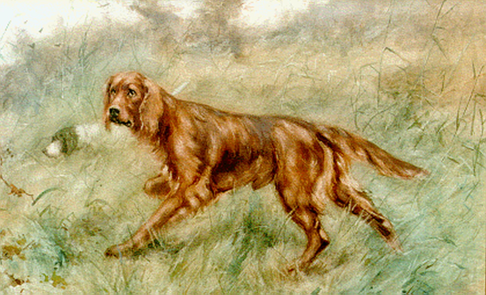 John Hulk jr. Kunstwerk • Aquarell • Zeichnung • zuvor zu verkaufen Ierse setter
