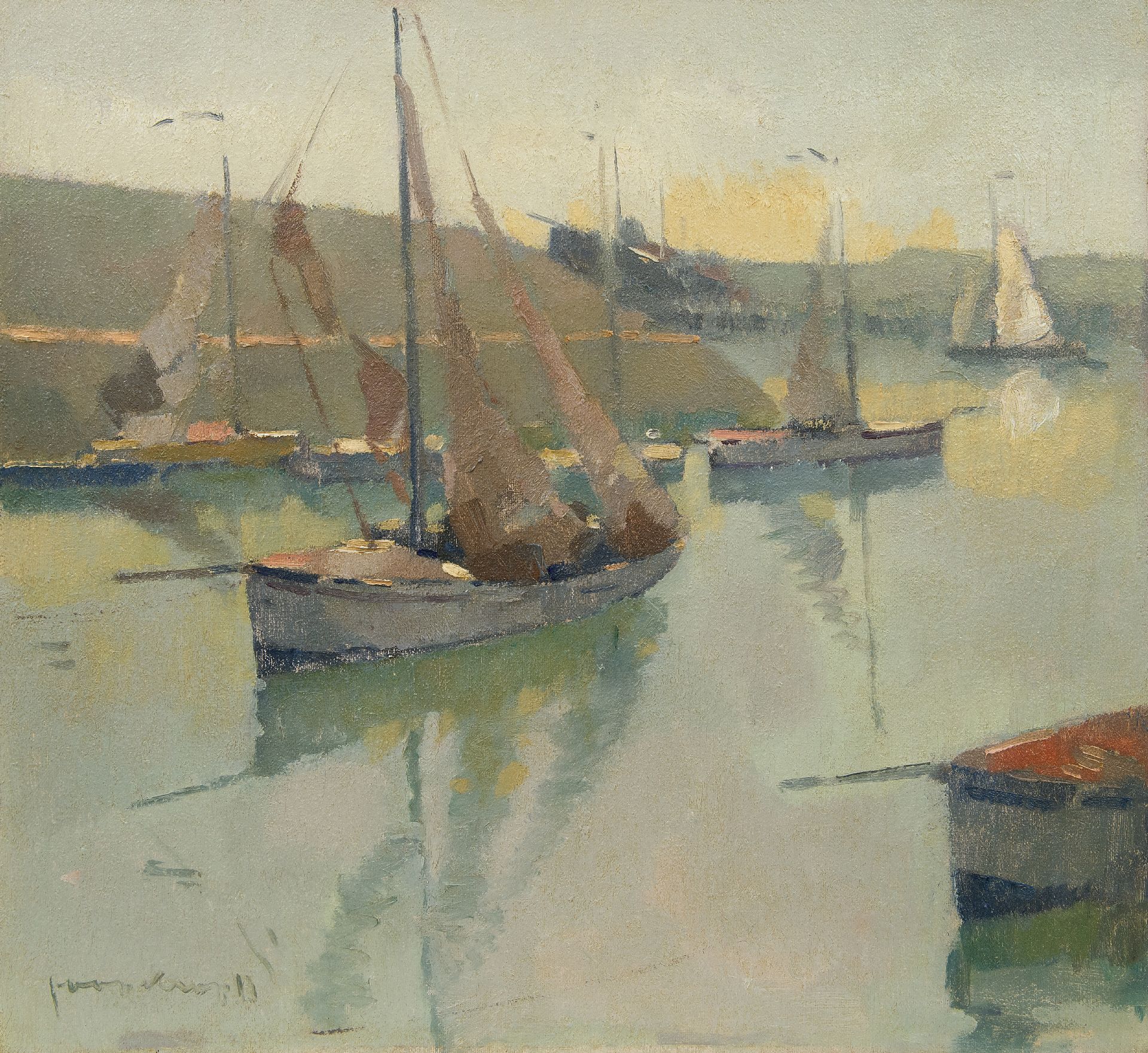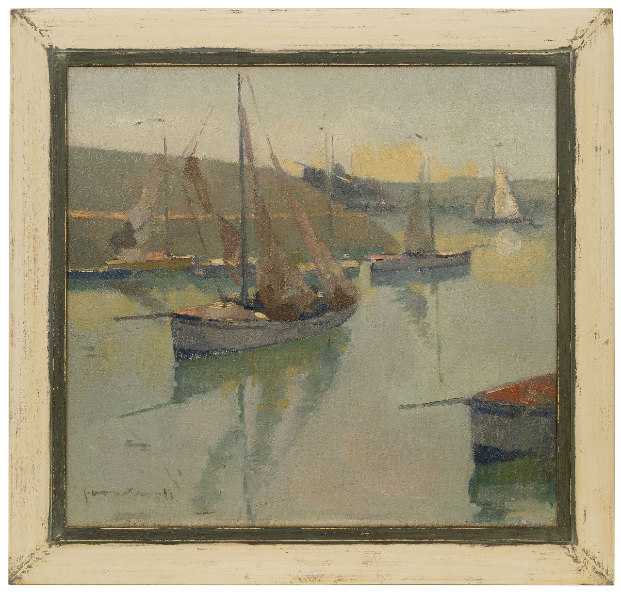 Joop Kropff Kunstwerk • Gemälde • zuvor zu verkaufen Schiffe im Hafen von Scheveningen