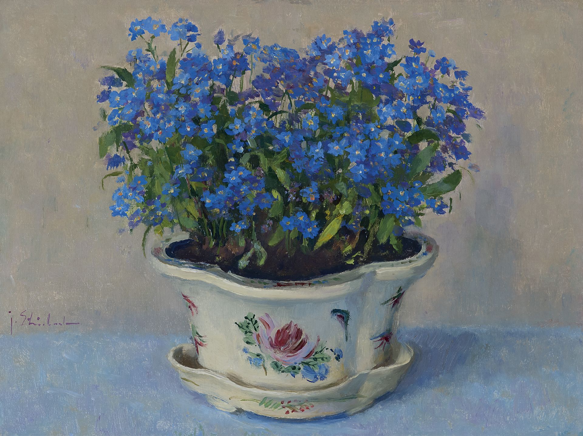 Joop Stierhout Kunstwerk • Gemälde • zuvor zu verkaufen Vergißmeinnicht in Ziervase