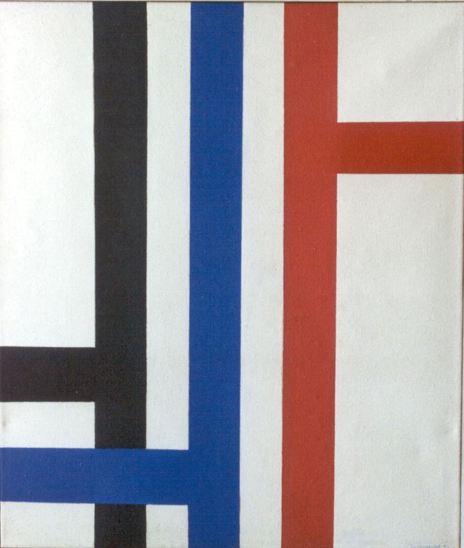 Der Den Haager Maler Joop Vreugdenhill malte zunächst expressionistische figurative Darstellungen, bis er sich in den 1960er Jahren auf geometrisch-abstrakte Kompositionen konzentrierte. Er stellte sich die Aufgabe, zu einer harmonischen Anordnung der rechteckigen Elemente zu gelangen, aus denen er seine Kompositionen aufbaute. Der Bemalung ging ein Prozess voraus, in dem die Abmessungen, die gegenseitigen Proportionen sowie Form und Farbe sorgfältig geprüft wurden, bis ein Gleichgewicht erreicht war.