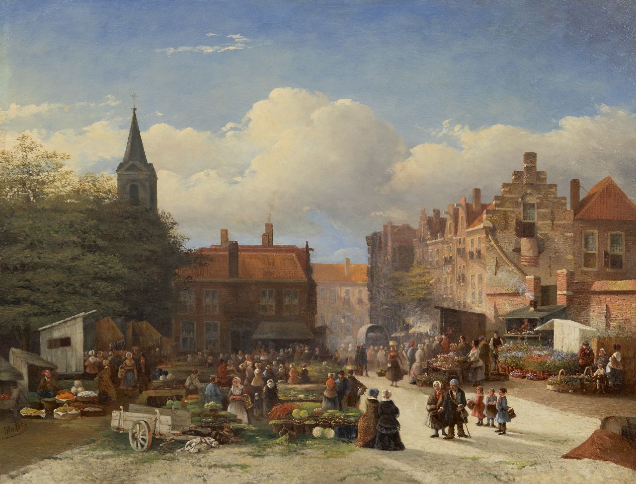 Joseph Bles Kunstwerk • Gemälde • zuvor zu verkaufen Aussicht auf den Gemüse- und Blumenmarkt in eine alte holländische Stadt