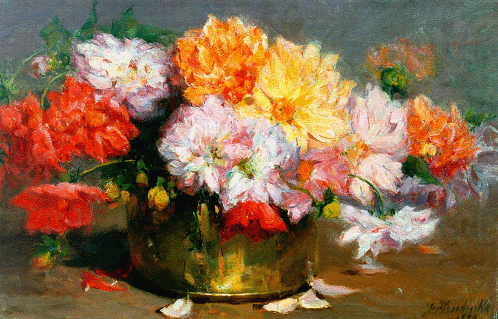 Josephina Hendrickx Kunstwerk • Gemälde • zuvor zu verkaufen A still life with dahlias