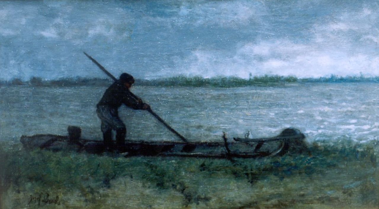 Jozef Israëls, der Nestor der Haagse School, war Schüler von J.A. Kruseman und von der Rijksacademie in Amsterdam. Von 1845 bis zum Jahre 1847, und später im Jahre 1853, studierte er in Paris wo er mit dem französischen Realismus Bekanntschaft machte. Von dieser Strömung beeinflusst zog er in den Niederlanden nach Zandvoort und Katwijk und machte das harte Leben der Fischerbevölkerung zu seinem Thema. Als Verlängerung dieser Linie entdeckte er in den siebziger Jahren das ‚malerische‘ Leben der Bauern in der Gooier Umgebung. Schon während seines Lebens hatte Jozef Israëls mit seinen romantisch-realistischen Gemälden sowohl in den Niederlanden als auch im Ausland viel Erfolg
