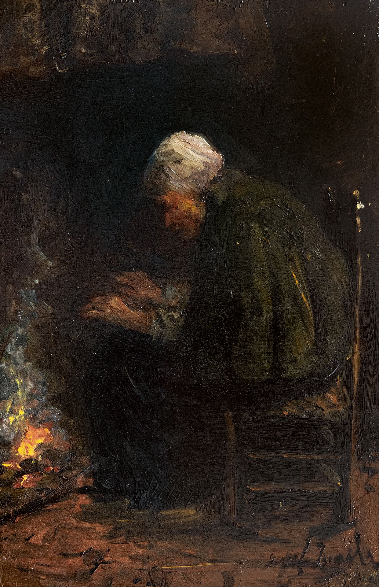 Jozef Israëls Kunstwerk • Gemälde • zuvor zu verkaufen Am Kamin