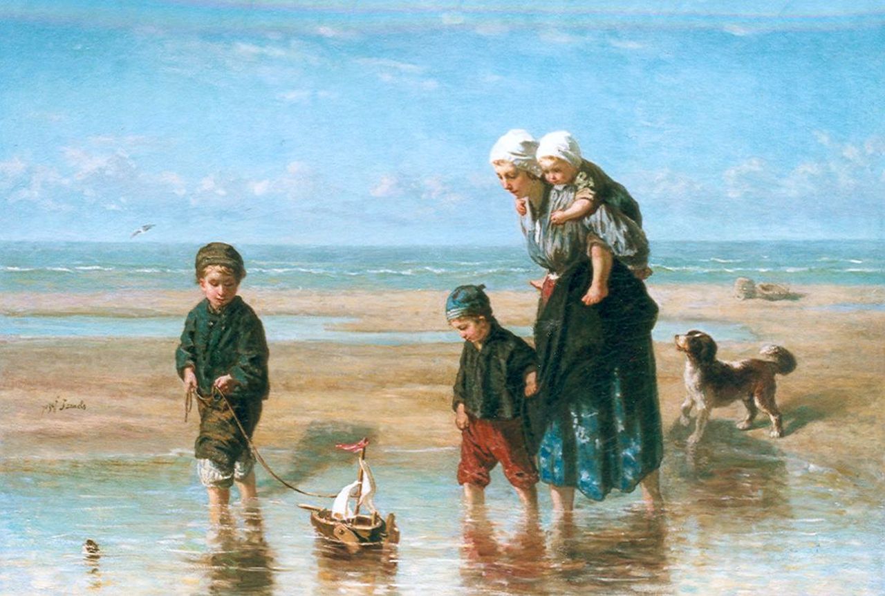 Jozef Israëls Kunstwerk • Gemälde • zuvor zu verkaufen Playing in the surf