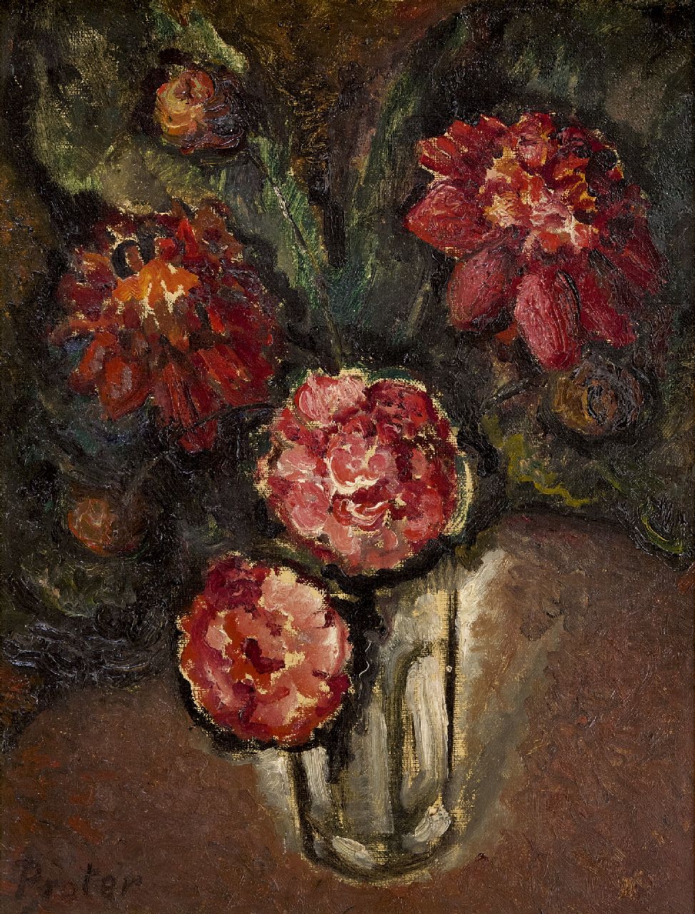 Jules De Praetere Kunstwerk • Gemälde • zu verkaufen Rote Blumen
