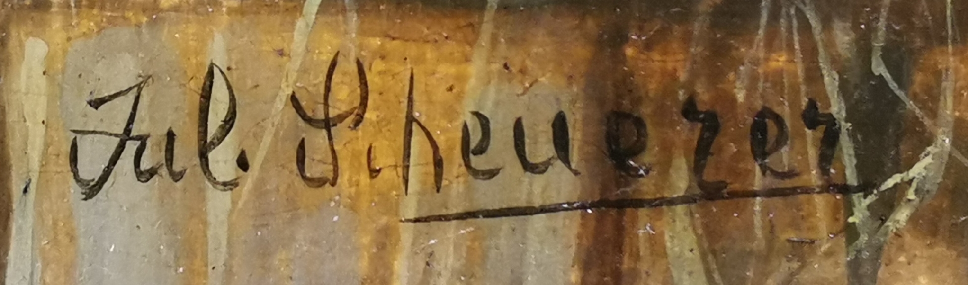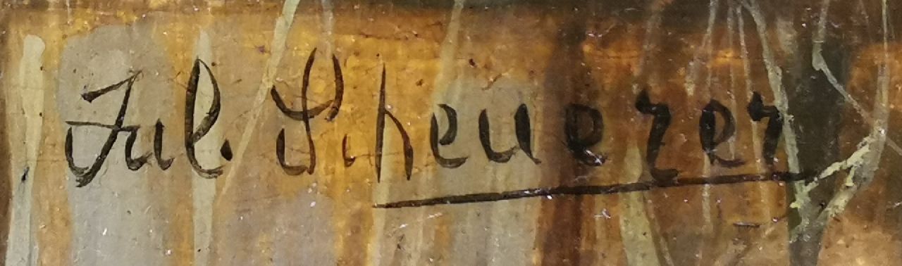 Obwohl er kurzfristig an der Akademie in München studierte, war der süddeutsche Julius Scheuerer grösstenteils Autodidakt. Er malte Landschaften und Wild- und Jagdszenen, machte sich aber einen Namen mit Geflügelszenen. Scheuerer kam aus einer künstlerischen Familie. Sein jüngerer Bruder Otto war gleichfalls ein Maler und spezialisierte sich auch auf die Malerei von Wild, Kleinvieh und Vögel.