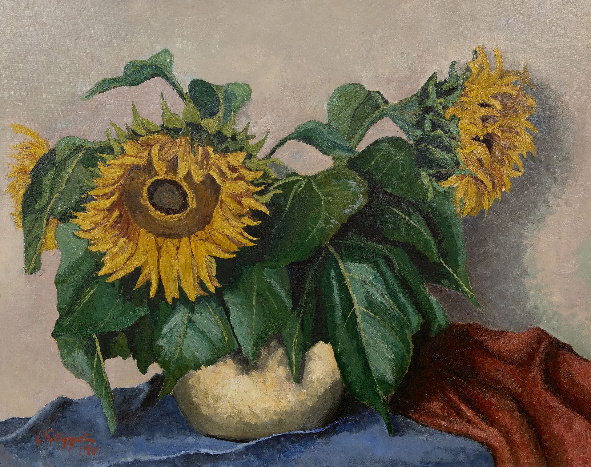 Karel Appel Kunstwerk • Gemälde • zu verkaufen Stillleben mit Sonnenblumen